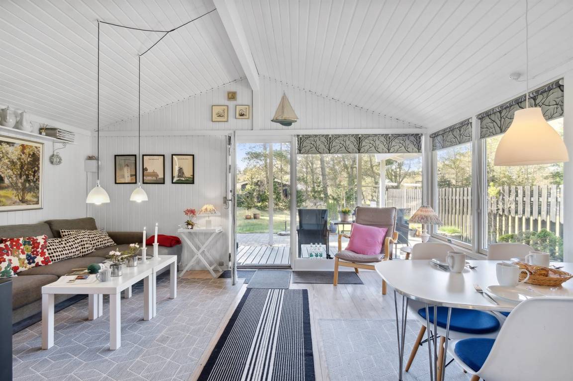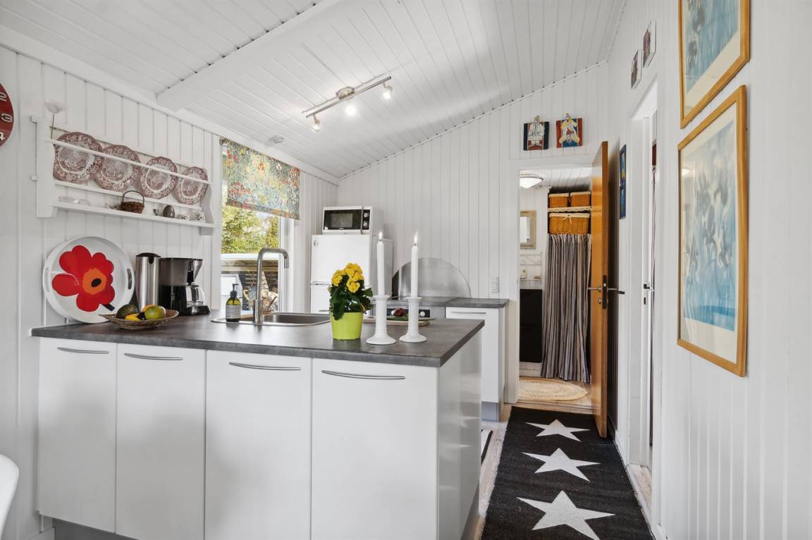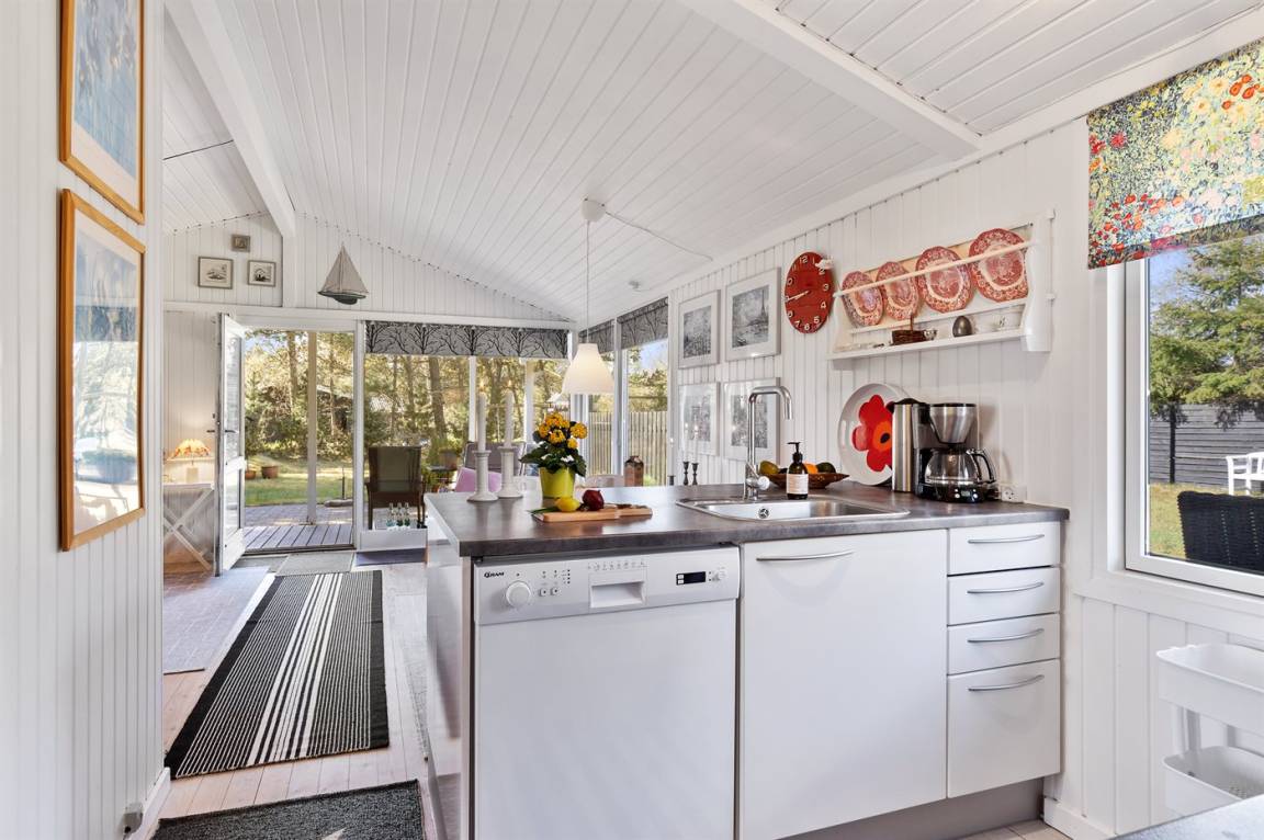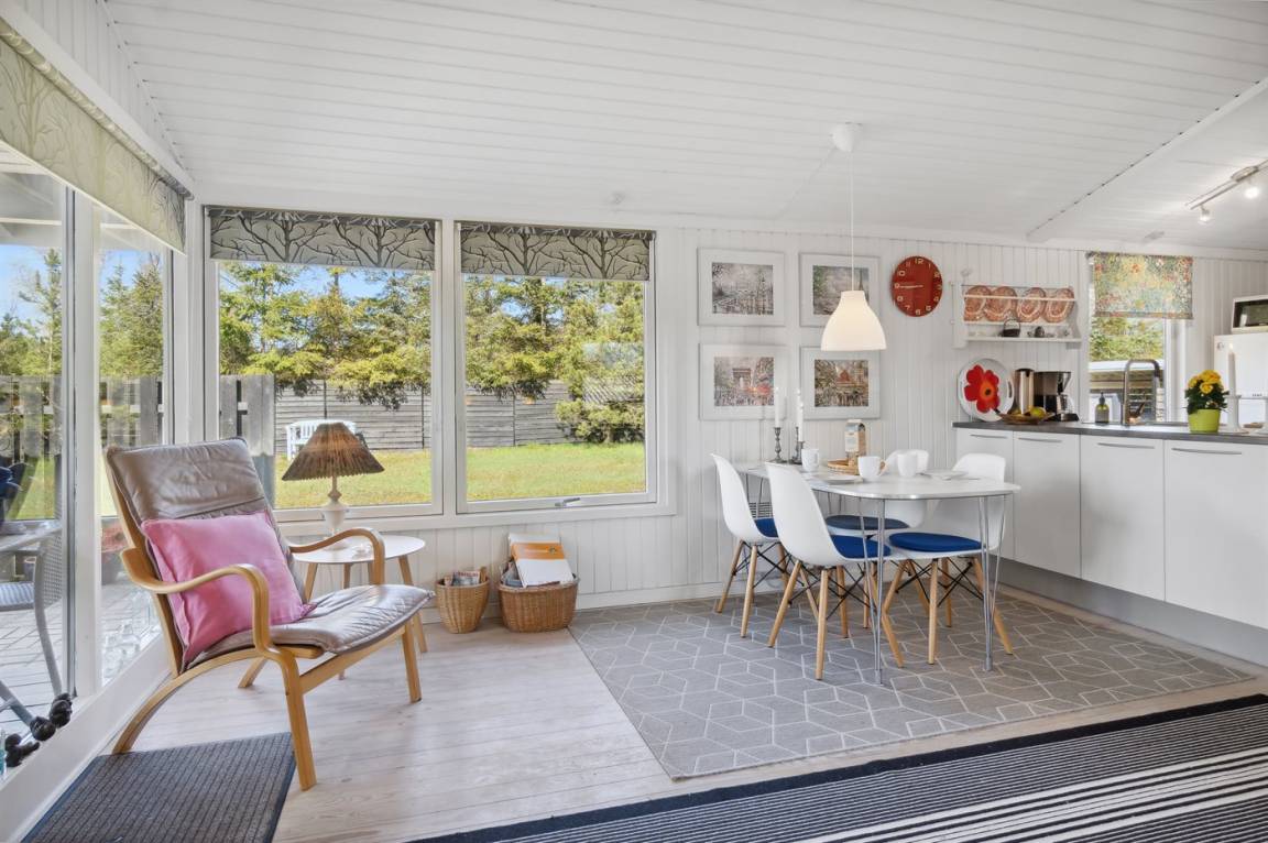 DraußenDie Ferienunterkunft liegt auf einem 1200 m² großen Das Grundstück ist eingezäunt. Die Entfernung zum Meer beträgt 500 m. Die Entfernung zum Fjord beträgt 6570 m. Die nächste Einkaufsmöglichkeit liegt 900 m entfernt. In einem Abstand von 6080 m gibt es einen Golfplatz. Es steht ein 40 m² Terrassenareal zur Verfügung. Außerdem gibt es 8 m² überdachte Terrasse. Zutritt zu einem Wintergarten. Schaukel. Sandkasten. Es steht ein Grill zur Verfügung. Parkplatz auf dem Grundstück.