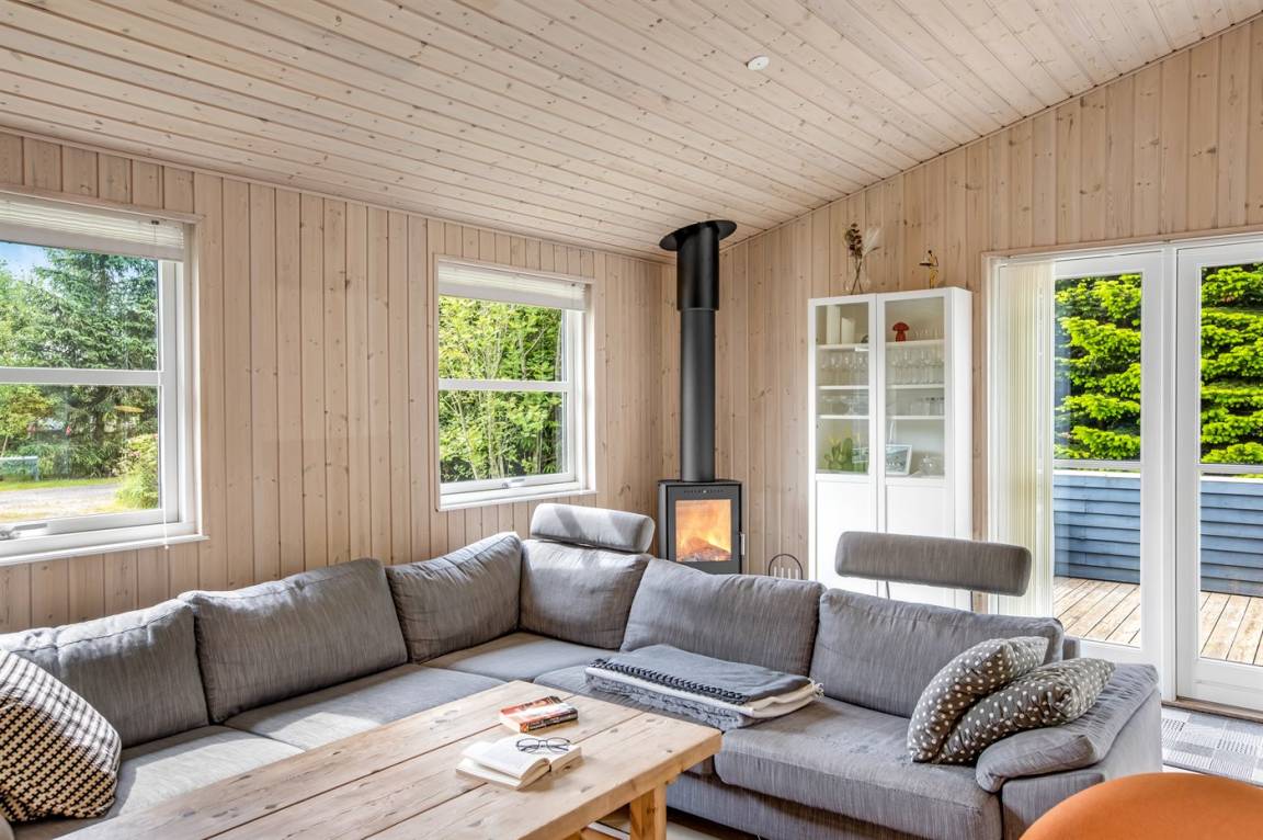 DraußenDie Ferienunterkunft liegt auf einem 1252 m² großen Naturgrundstück. Die Entfernung zum Meer beträgt 600 m. Die Entfernung zum Fjord beträgt 5400 m. Die nächste Einkaufsmöglichkeit liegt 3000 m entfernt. In einem Abstand von 4860 m gibt es einen Golfplatz. Es steht ein offenes Terrassenareal zur Verfügung. Es steht ein Grill zur Verfügung. Es ist ein Ladestecker für Elektroautos installiert. Ladestecker Typ 2. Parkplatz auf dem Grundstück.