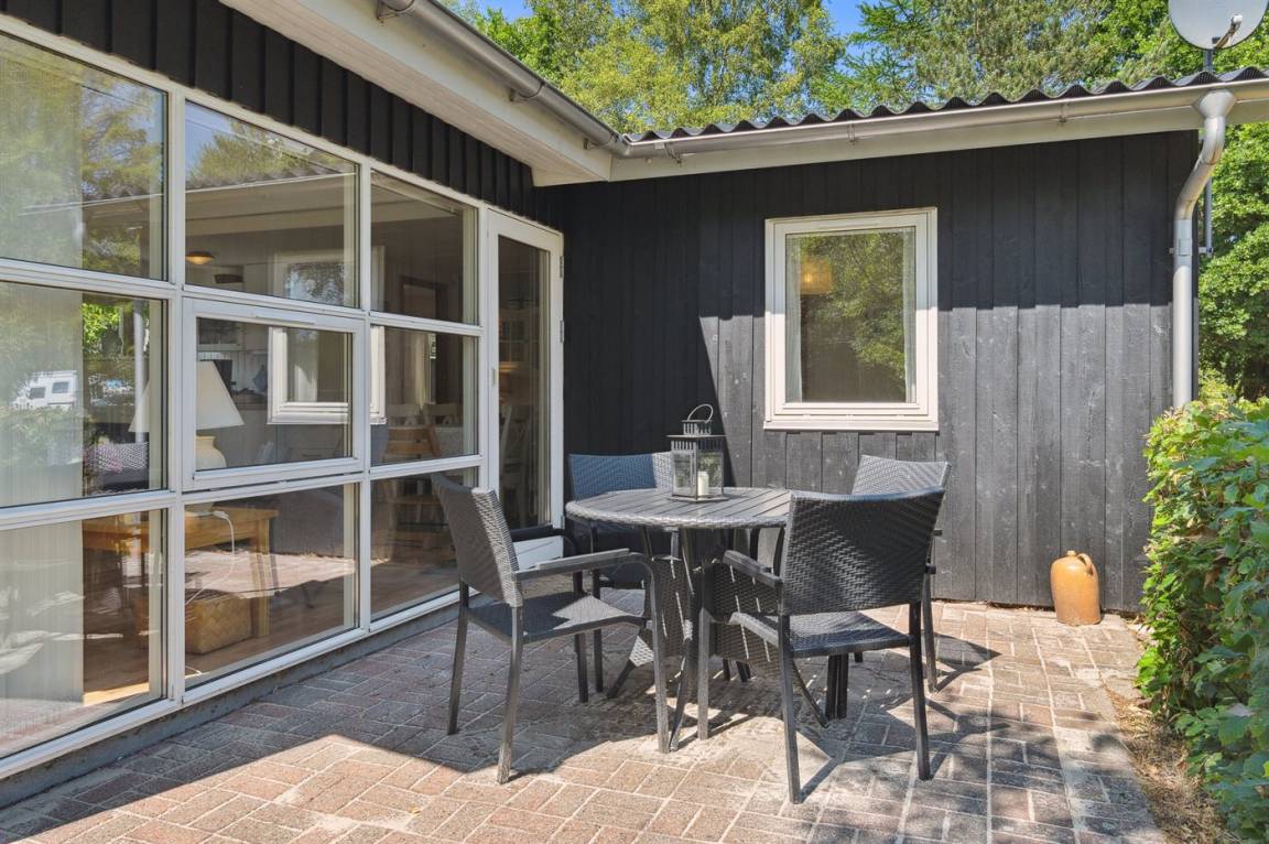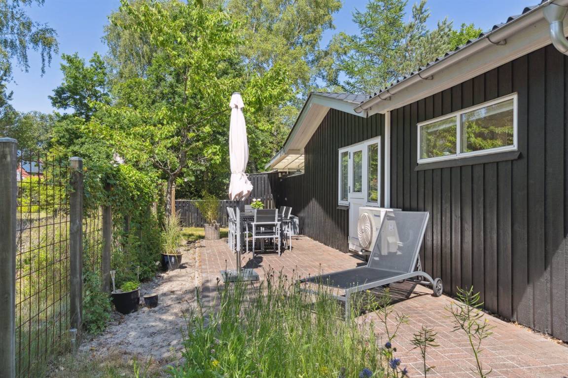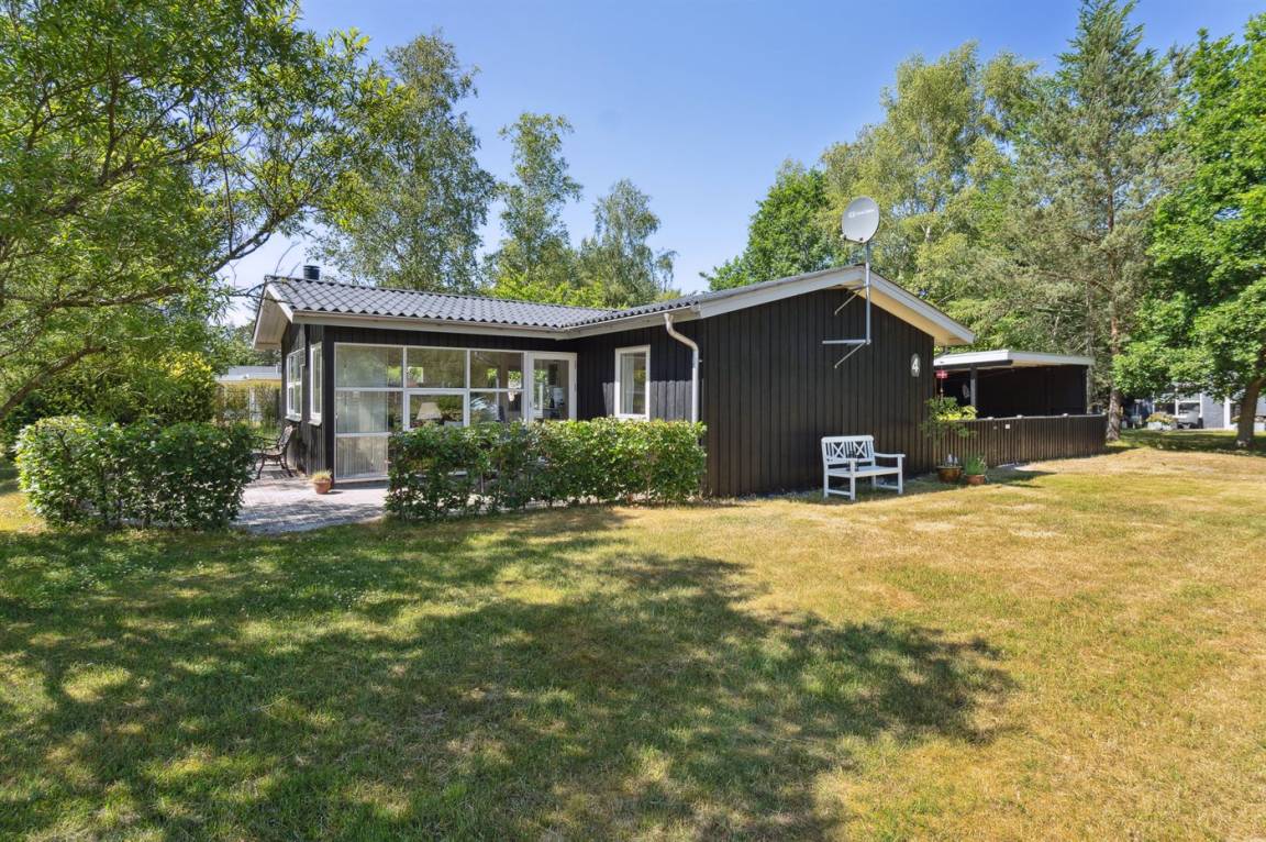 Schönes, gepflegtes Ferienhaus inmitten malerischer Natur in einer ruhigen Ferienhaussiedlung, unweit vom Wasser und einem schönen, kinderfreundlichen Badestrand gelegen.