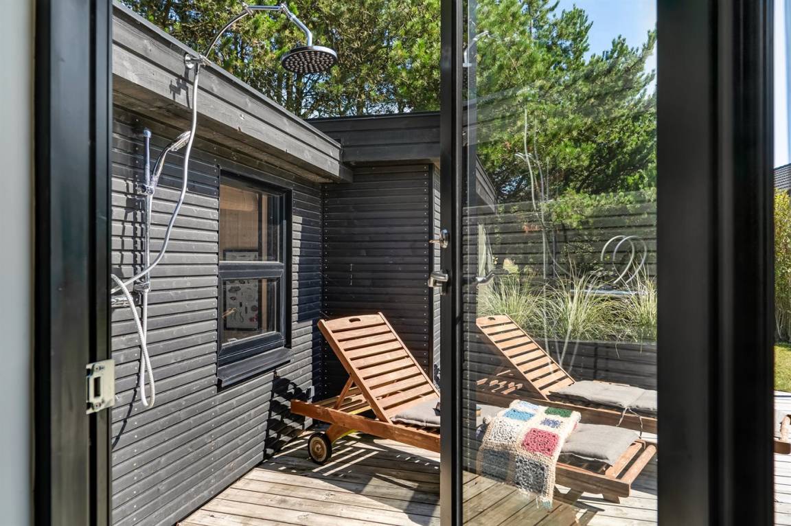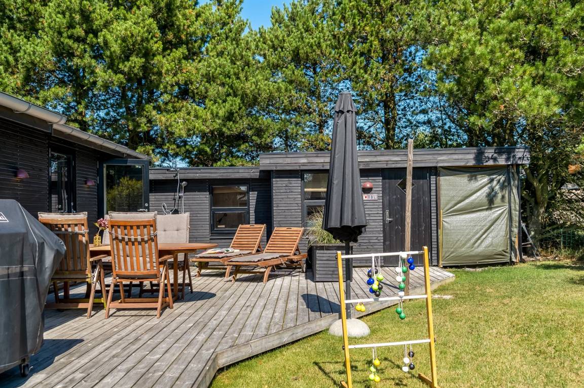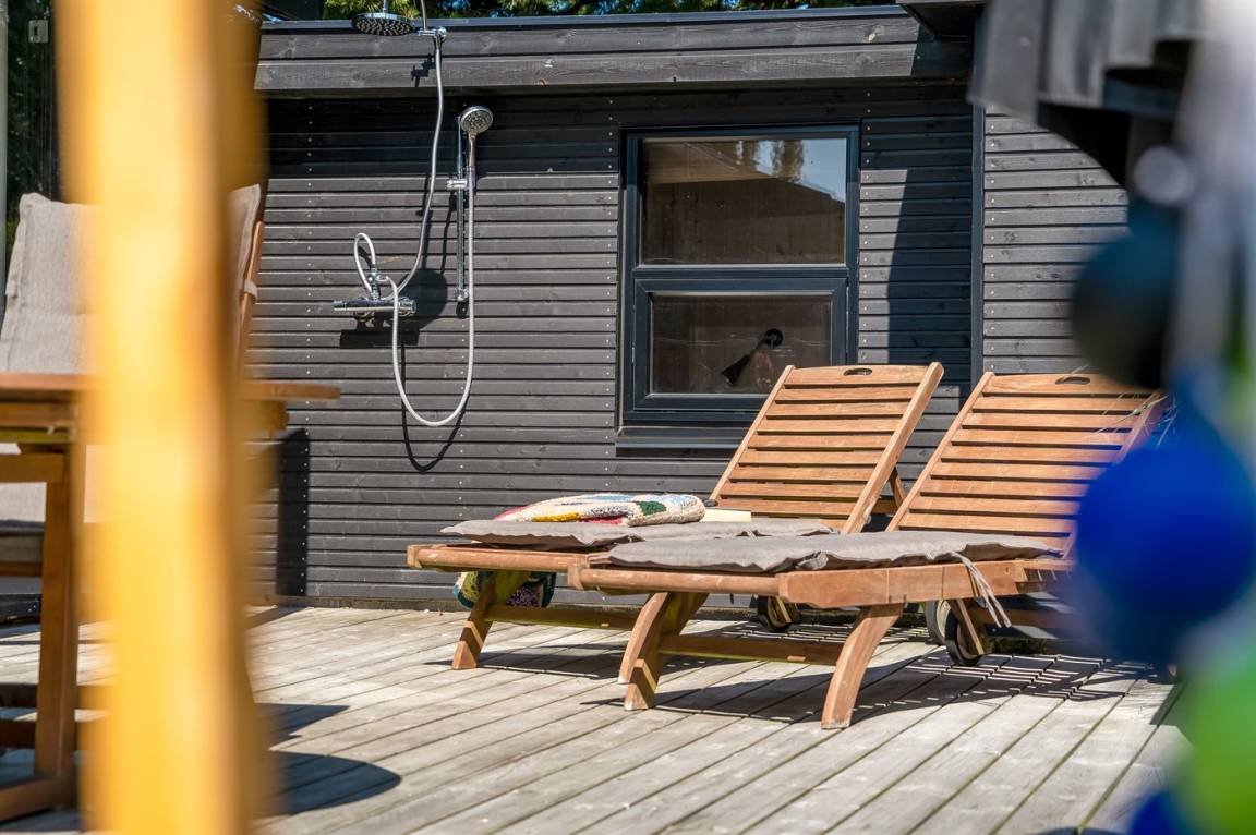 Das Ferienhaus verfügt über eine schöne Terrasse mit Grill, auf der ihr die Sommertage genießen und gemütliche Grillabende verbringen könnt. Außerdem gibt es eine praktische Außendusche – perfekt nach einem Strandbesuch oder einem Tag in der Sonne.