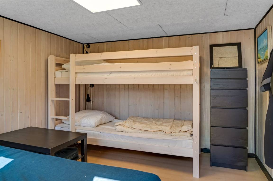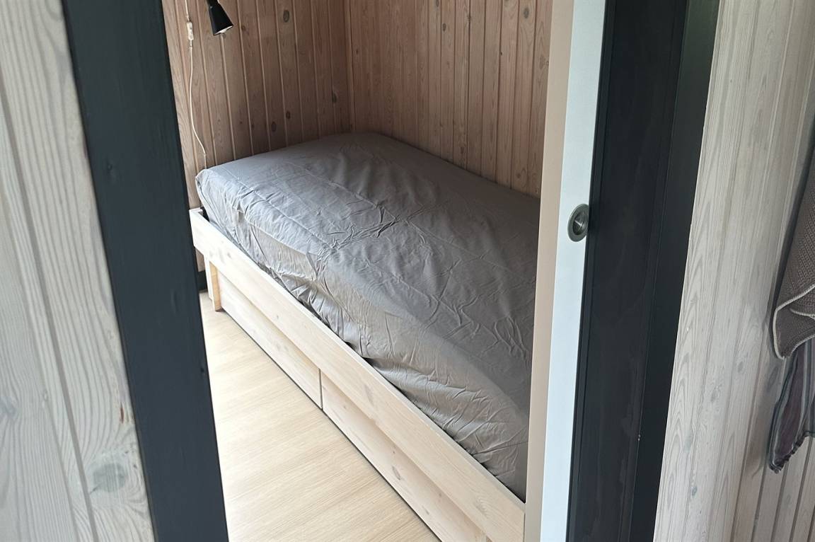 Es gibt insgesamt 3 Schlafzimmer – 2 im Sommerhaus und 1 im Gästehaus. Die Schlafplätze im Sommerhaus verteilen sich wie folgt: 1 Zimmer mit Doppelbett und 1 Zimmer mit Doppelschlafcouch. Im Gästehaus gibt es 1 Etagenbett und 1 Einzelbett. Außerdem steht ein Kinderbett zur Verfügung.