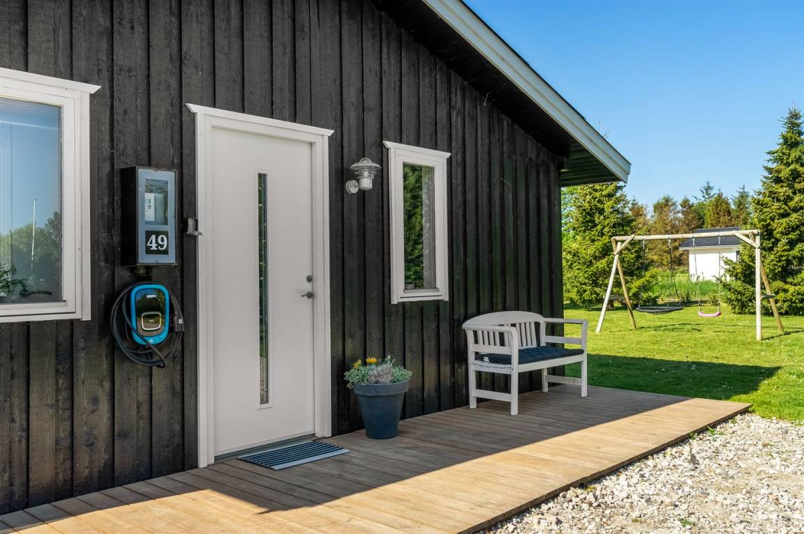 DraußenDie Ferienunterkunft liegt auf einem 1413 m² großen Gartengrundstück. Die Entfernung zum Meer beträgt 400 m. Die Entfernung zum Fjord beträgt 7050 m. Die nächste Einkaufsmöglichkeit liegt 810 m entfernt. In einem Abstand von 6560 m gibt es einen Golfplatz. Es steht ein offenes Terrassenareal zur Verfügung. Außerdem gibt es überdachte Terrasse. Schaukel. Sandkasten. Trampolin. Die Entfernung zu einem Spielplatz beträgt 900 m.Lagerfeuerstelle. Es steht ein Grill zur Verfügung. Es ist ein Ladestecker für Elektroautos installiert. Ladestecker Typ 2. Mit einer Ladeleistung von 22 kW. Parkplatz auf dem Grundstück.