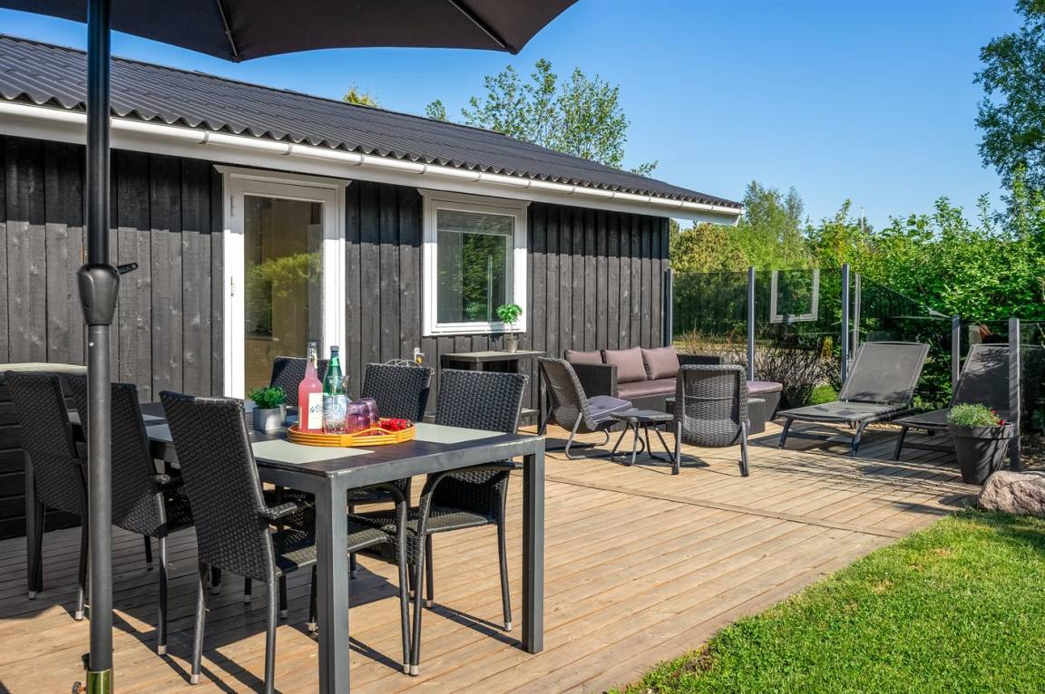 Das Ferienhaus, zu dem ein schöner Garten mit mehreren gemütlichen Ecken gehört, ist perfekt für diejenigen, die einen Urlaub in ruhiger Umgebung suchen. Setzt euch in den Garten oder auf die Terrasse, wo man sich in ein gutes Buch vertiefen, eine Tasse Kaffee genießen oder einfach nur sitzen und den Kindern beim Spielen zusehen kann. Es gibt auch verschiedene Gartenspiele wie Stangentennis, Krocket, Wikingerspiel usw.