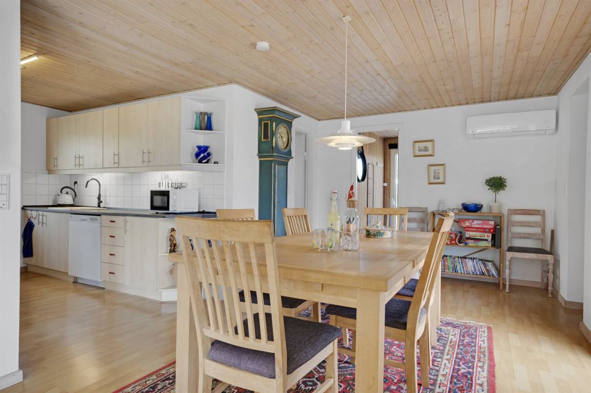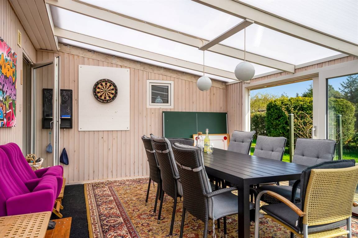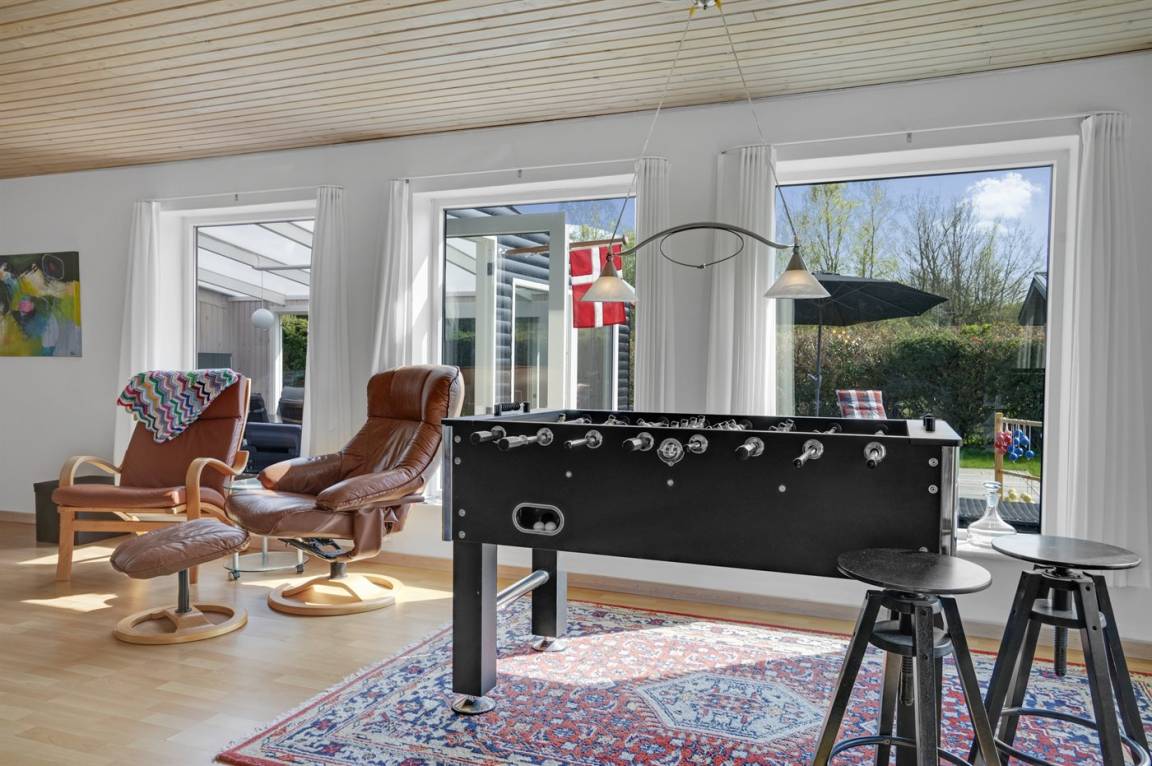 Dieses schöne und gut gelegene Ferienhaus liegt im ruhigen Feriengebiet Koldkær - zwischen Hou und Hals. Hier können Sie auf der großen, teilweise überdachten Terrasse des Hauses die Stunden im Freien genießen. Währenddessen können sich Jung und Alt im dazugehörigen Aktivitätenraum mit einem Spiel amüsieren und die Kinder können sich auf dem großen Grundstück austoben. Das Haus liegt etwa 1000 m vom Wasser und nur eine kurze Radtour oder Spaziergang von den Ferienorten Hou und Hals entfernt. Hier finden Sie eine Auswahl an Cafés und Restaurants sowie gemütliche Häfen.