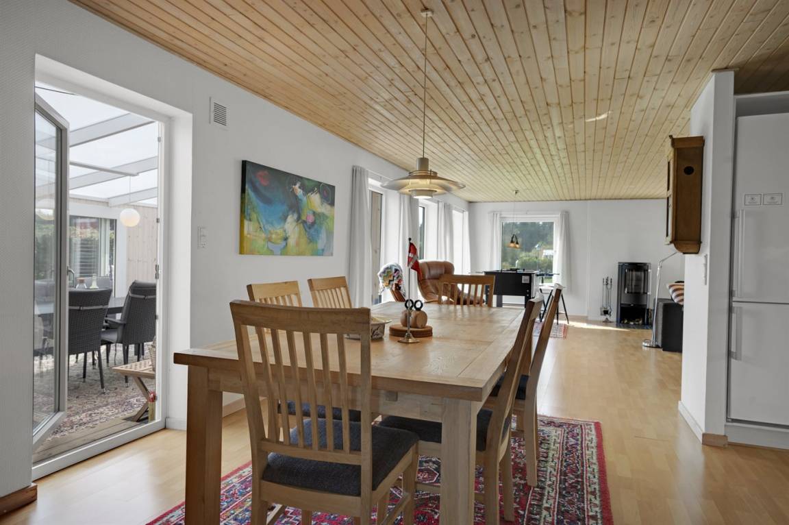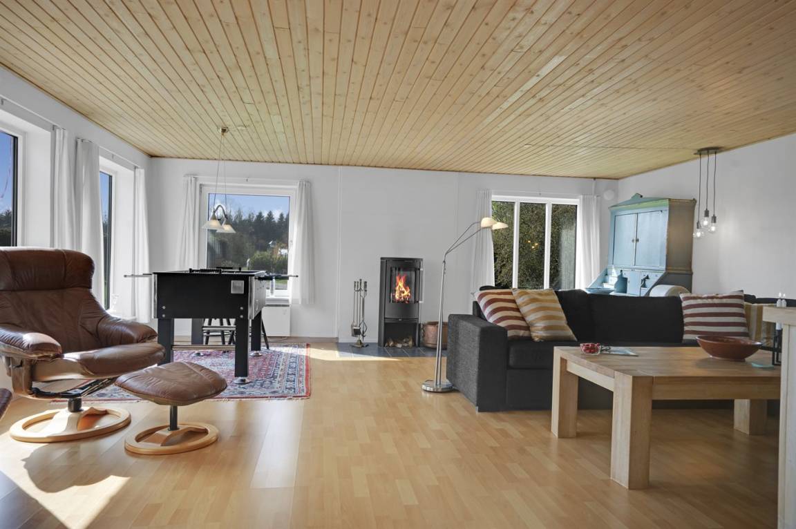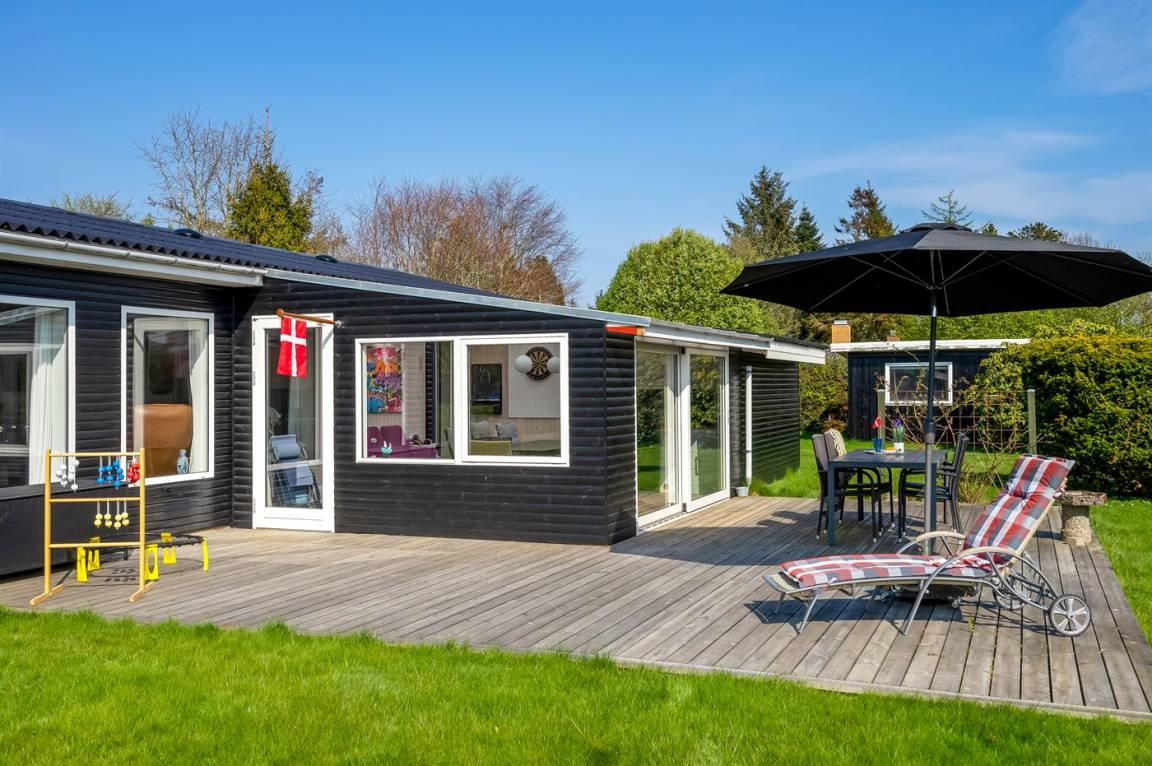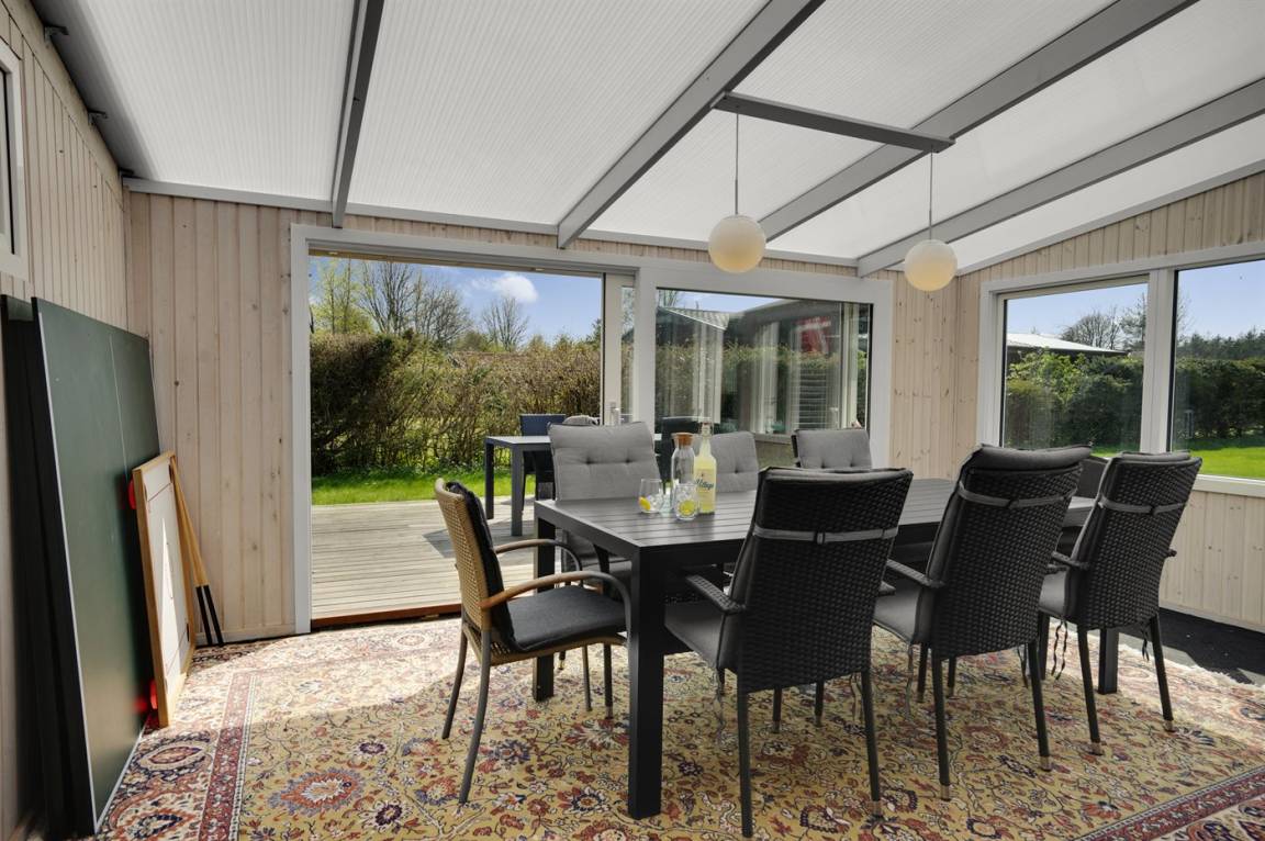 Dieses schöne und gut gelegene Ferienhaus liegt im ruhigen Feriengebiet Koldkær - zwischen Hou und Hals. Hier können Sie auf der großen, teilweise überdachten Terrasse des Hauses die Stunden im Freien genießen. Währenddessen können sich Jung und Alt im dazugehörigen Aktivitätenraum mit einem Spiel amüsieren und die Kinder können sich auf dem großen Grundstück austoben. Das Haus liegt etwa 1000 m vom Wasser und nur eine kurze Radtour oder Spaziergang von den Ferienorten Hou und Hals entfernt. Hier finden Sie eine Auswahl an Cafés und Restaurants sowie gemütliche Häfen.