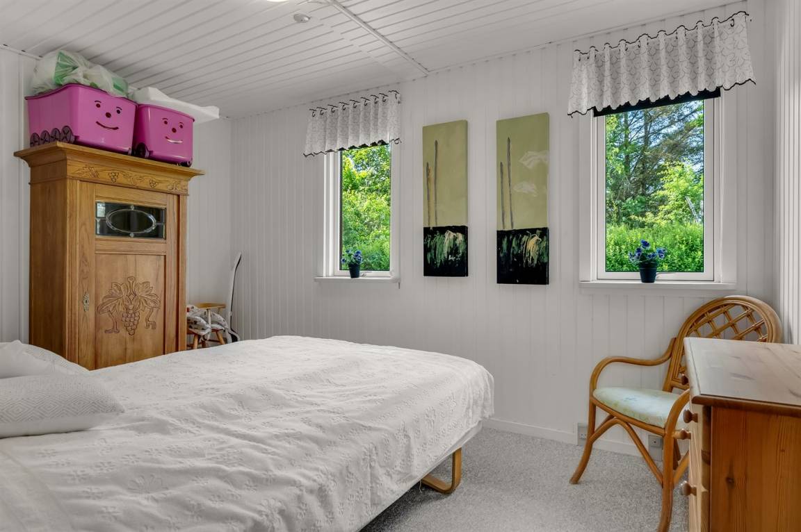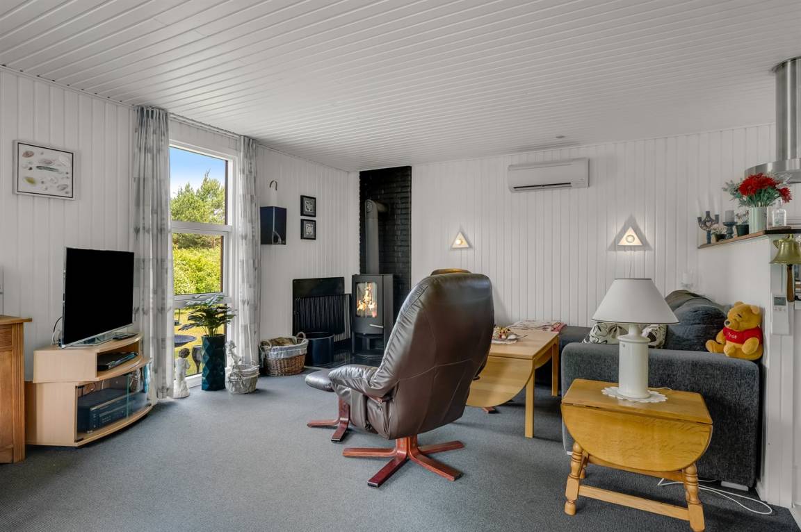 Gemütliches Ferienhaus auf einem Naturgrundstück gelegen, ca. 400 m vom Sandbadestrand entfernt. Zum Haus gehört ein Gästehaus, das mit 2 der insgesamt 7 Schlafplätze eingerichtet ist. Im Wohnzimmer steht eine Schlafcouch, die als extra Schlafplatz dienen kann.
