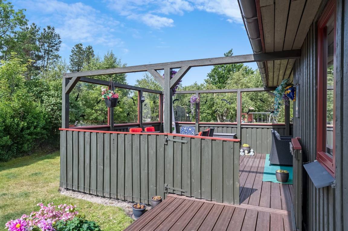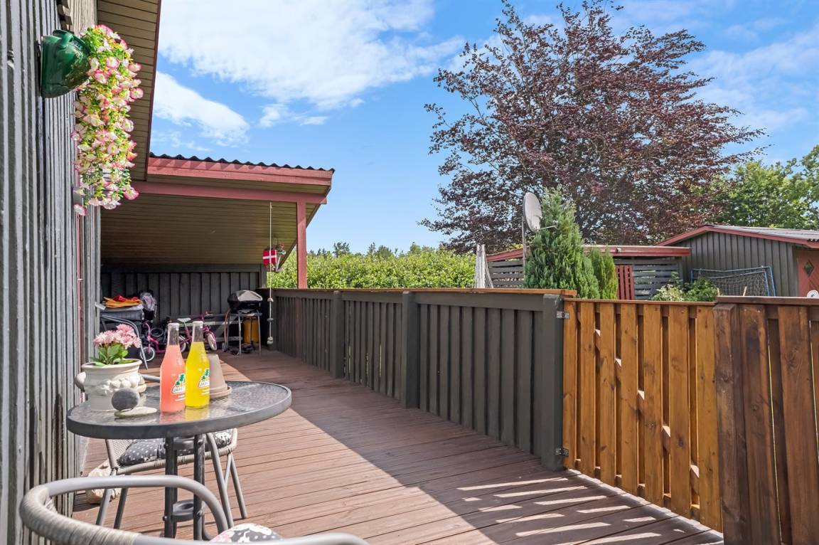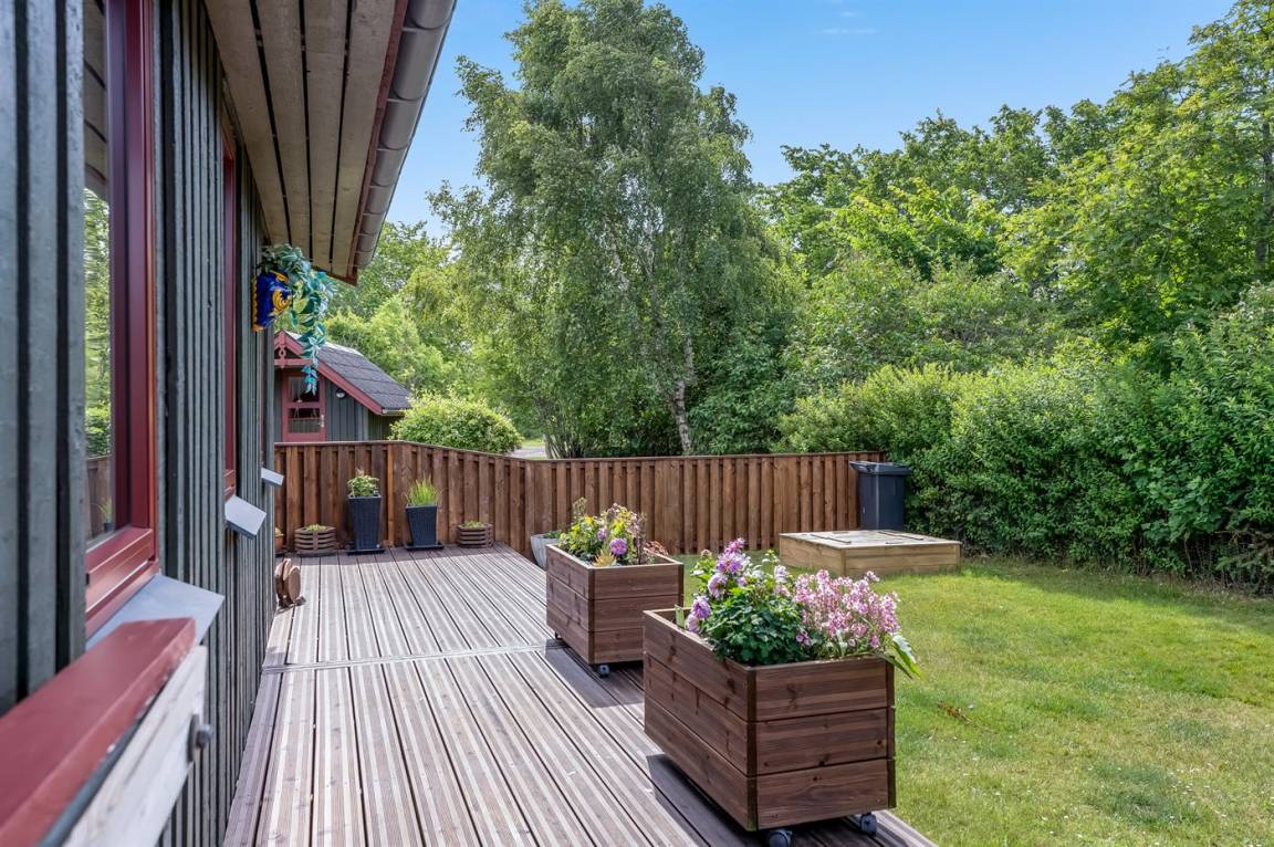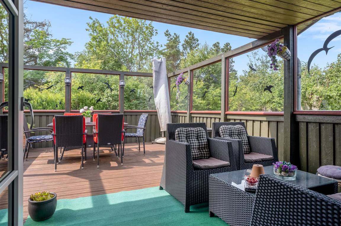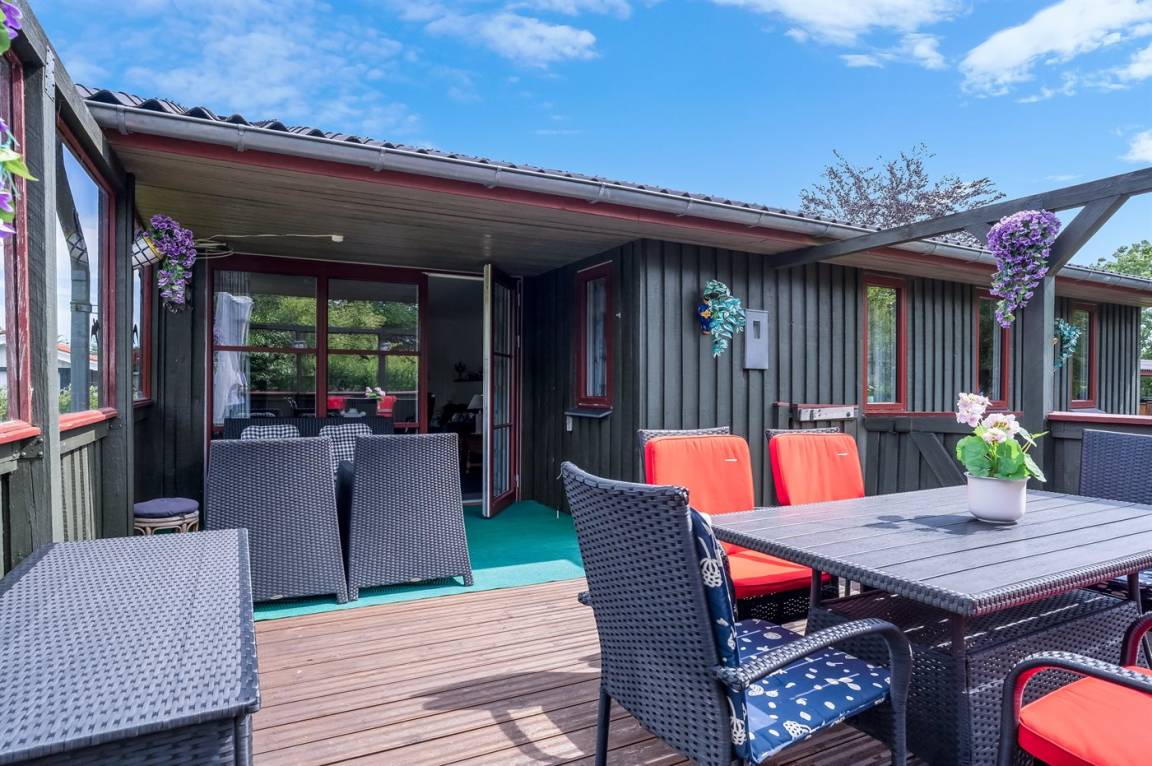 DraußenDie Ferienunterkunft liegt auf einem 1200 m² großen Gartengrundstück. Die Entfernung zum Meer beträgt 400 m. Die nächste Einkaufsmöglichkeit liegt 500 m entfernt. Es steht ein 8 m² Terrassenareal zur Verfügung. Außerdem gibt es 45 m² überdachte Terrasse. Schaukel. Sandkasten. Es steht ein Grill zur Verfügung. Parkplatz auf dem Grundstück.