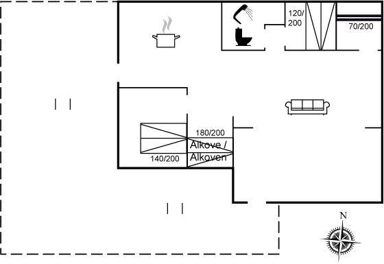 DraußenDie Ferienunterkunft liegt auf einem 1399 m² großen Gartengrundstück. Die Entfernung zum Meer beträgt 1300 m. Die Entfernung zum Fjord beträgt 6700 m. Die nächste Einkaufsmöglichkeit liegt 1300 m entfernt. In einem Abstand von 5500 m gibt es einen Golfplatz. Es steht ein offenes Terrassenareal zur Verfügung. Es gibt außerdem ein Orangerie. Es steht ein Grill zur Verfügung. Parkplatz auf dem Grundstück.