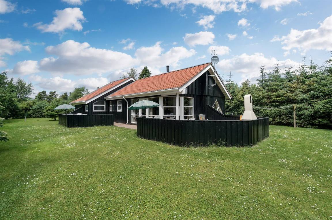 Sehr gepflegtes und kinderfreundliches Ferienhaus auf einem Waldgrundstück in einem rekreativen Gebiet - nur 300 m vom Strand entfernt und dicht an Aktivitäten.