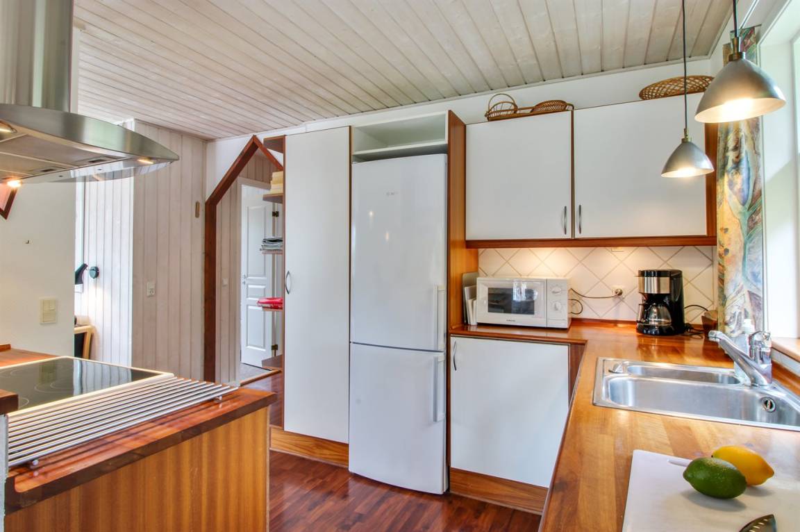 EinrichtungDas Ferienhaus eignet sich für 8 Personen sowie 1 Kleinkind bis zu 3 Jahren. Die Ferienunterkunft hat eine Wohnfläche von 115 m² und wurde 1999 gebaut. 2010 wurde die Ferienunterkunft teilweise renoviert. Haustiere dürfen nicht mitgebracht werden. Die Ferienunterkunft ist mit energiesparender Wärmepumpe ausgestattet. Die Ferienunterkunft ist mit Waschmaschine ausgestattet. Wäschetrockner. Tiefkühlmöglichkeit mit 60 Liter Nutzinhalt. Es gibt außerdem einen Kaminofen. Für die jüngsten Feriengäste ist 1 Kinderhochstuhl vorhanden.
