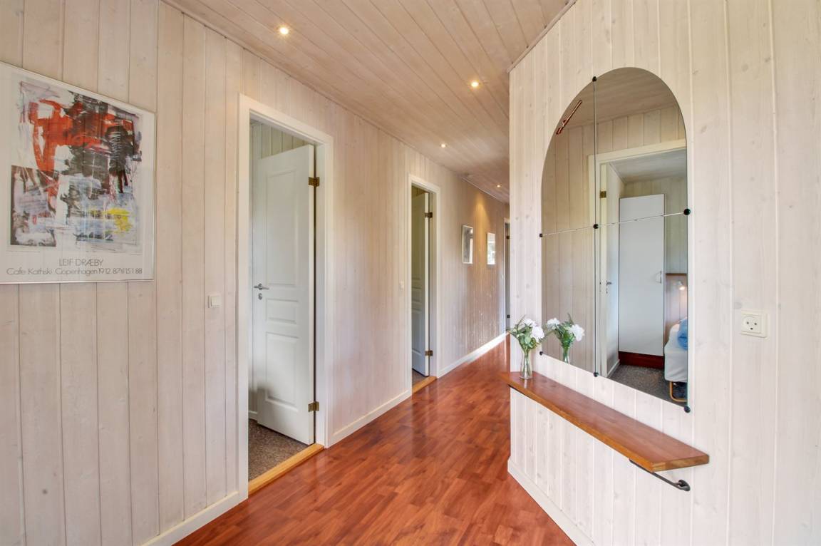 DraußenDie Ferienunterkunft liegt auf einem 1300 m² großen Gartengrundstück. Die Entfernung zum Meer beträgt 300 m. Die Entfernung zum Fjord beträgt 7000 m. Die nächste Einkaufsmöglichkeit liegt 200 m entfernt. In einem Abstand von 5000 m gibt es einen Golfplatz. Es steht ein 80 m² Terrassenareal zur Verfügung. Schaukel. Sandkasten. Kinderspielhaus. Rutsche.Wippe. Es steht ein Grill zur Verfügung. Parkplatz auf dem Grundstück.