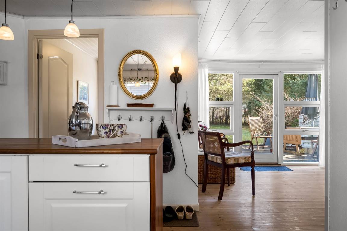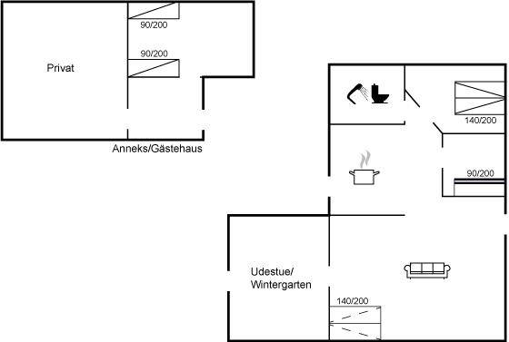 DraußenDie Ferienunterkunft liegt auf einem 1210 m² großen Naturgrundstück. Das Grundstück ist eingezäunt. Die Entfernung zum Meer beträgt 950 m. Die Entfernung zum Fjord beträgt 3980 m. Die nächste Einkaufsmöglichkeit liegt 3700 m entfernt. In einem Abstand von 3530 m gibt es einen Golfplatz. Es steht ein offenes Terrassenareal zur Verfügung. Außerdem gibt es überdachte Terrasse. Zutritt zu einem Wintergarten. Es steht ein Grill zur Verfügung. Parkplatz auf dem Grundstück.