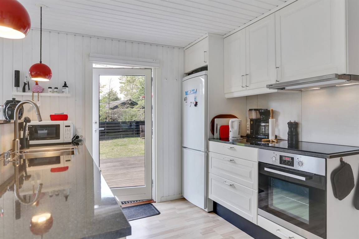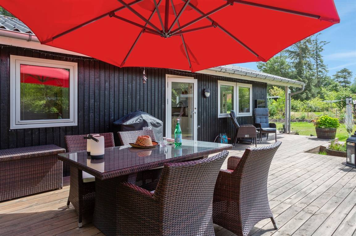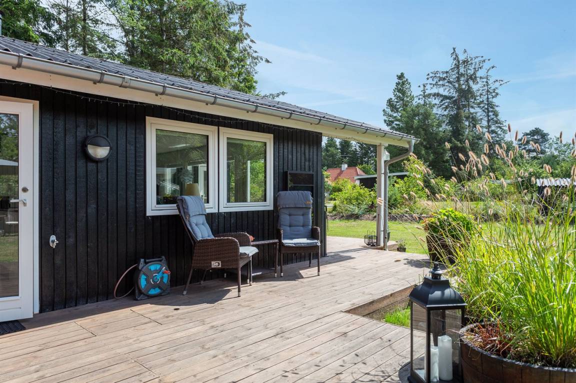 DraußenDie Ferienunterkunft liegt auf einem 1050 m² großen Gartengrundstück. Das Grundstück ist eingezäunt. Die Entfernung zum Meer beträgt 550 m. Die Entfernung zum Fjord beträgt 1550 m. Die nächste Einkaufsmöglichkeit liegt 1900 m entfernt. In einem Abstand von 1150 m gibt es einen Golfplatz. Es steht ein offenes Terrassenareal zur Verfügung. Außerdem gibt es überdachte Terrasse. Es steht ein Grill zur Verfügung. Es ist ein Ladestecker für Elektroautos installiert. Mit einer Ladeleistung von 11 kW. Parkplatz auf dem Grundstück.