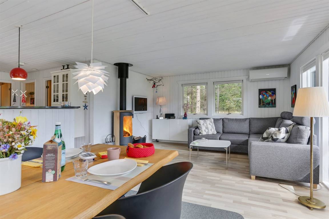 Das Ferienhaus eignet sich für 4 Personen sowie 1 Kleinkind bis zu 3 Jahren. Die Ferienunterkunft hat eine Wohnfläche von 62 m² und wurde 1983 gebaut. 2022 wurde die Ferienunterkunft renoviert. Es ist erlaubt 1 Haustier mitzubringen. Die Ferienunterkunft ist mit einer energiefreundlichen Luft-Luft-Wärmepumpe ausgestattet uind es ist ein Solarkollektor installiert. Die Ferienunterkunft ist mit Waschmaschine ausgestattet. Wäschetrockner. Tiefkühlmöglichkeit mit 110 Liter Nutzinhalt. Es gibt außerdem einen Kaminofen. Für die jüngsten Feriengäste ist 1 Kinderhochstuhl vorhanden.