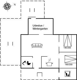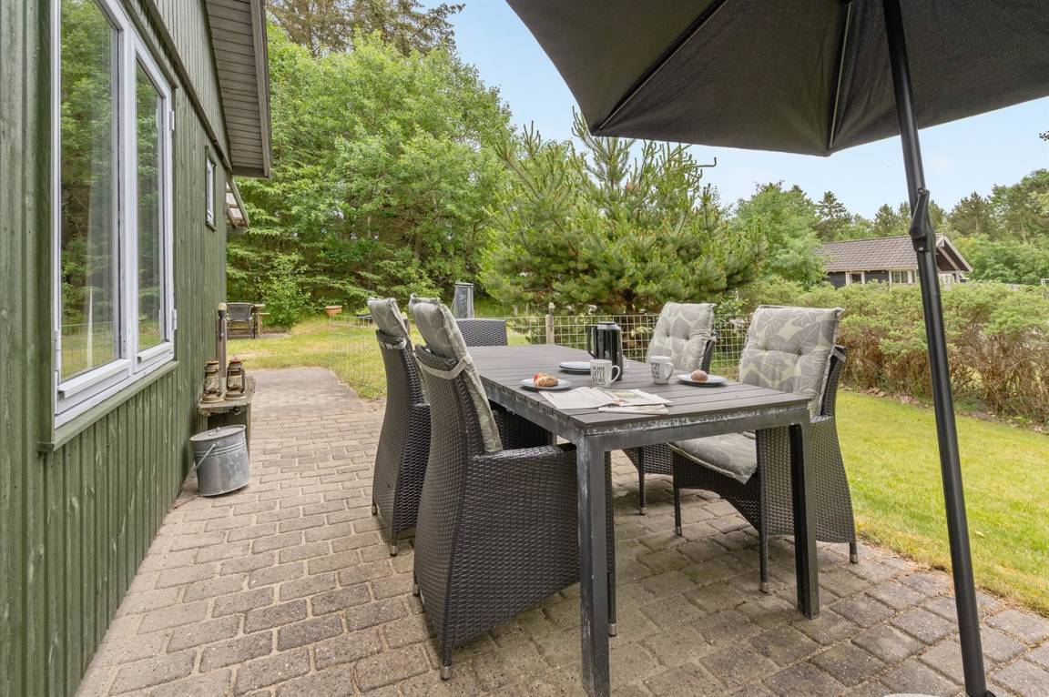 DraußenDie Ferienunterkunft liegt auf einem 2046 m² großen Naturgrundstück. Die Entfernung zum Meer beträgt 1700 m. Die nächste Einkaufsmöglichkeit liegt 2000 m entfernt. In einem Abstand von 8000 m gibt es einen Golfplatz. Es steht ein 40 m² Terrassenareal zur Verfügung. Zutritt zu einem Wintergarten. Geräteraum. Fußballtor. Die Entfernung zu einem Spielplatz beträgt 400 m.Lagerfeuerstelle. Es steht ein Grill zur Verfügung. Parkplatz auf dem Grundstück.