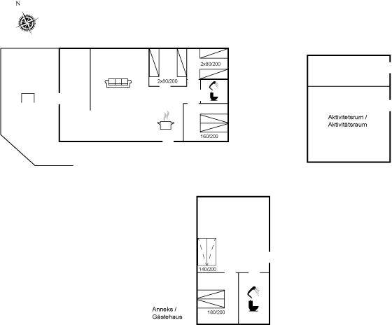 SchlafverhältnisseDie Schlafplätze verteilen sich auf 5 Schlafräume. 4 Schlafplätze in Doppelbetten. 4 Schlafplätze in Einzelbetten. 2 Schlafplätze auf einer Doppelschlafcouch. 4 von diesen Schlafplätzen befinden sich im Gästehaus. Ferner steht ein Kinderbett zur Verfügung.