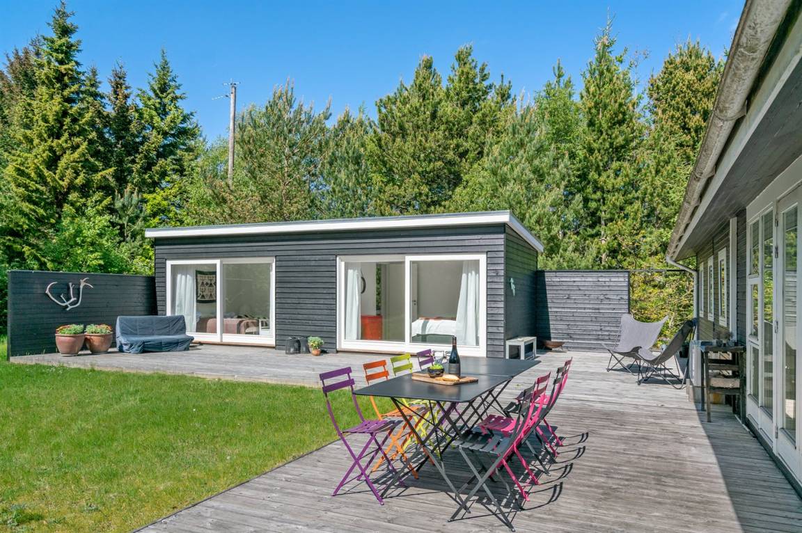 Dieses schön renovierte Ferienhaus liegt ungestört auf einem Grundstück, das auf der einen Seite an einen Wald angrenzt. Hier können Sie den Urlaub in ruhiger Umgebung genießen und der schöne Strand liegt nicht weit entfernt. Neben dem Haus liegt ein großes Gästehaus, 2017 erbaut, das mit 2 Schlafzimmer eingerichtet ist – ganz ideal für Teenager oder für die Großeltern. Die große Terrasse verbindet das Sommerhaus und das Gästehaus. Das Haus liegt in einem Gebiet mit guten Aktivitätsmöglichkeiten – Besuchen Sie z. B. den Ferienort Hals, wo es im Sommerhalbjahr eine gute Auswahl an Cafés und Restaurants gibt.