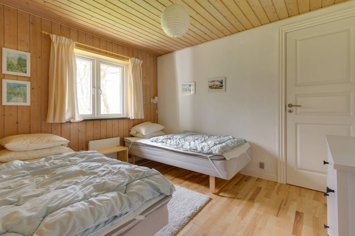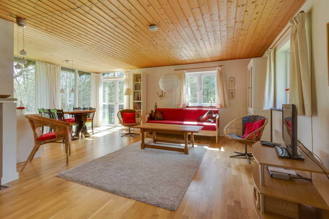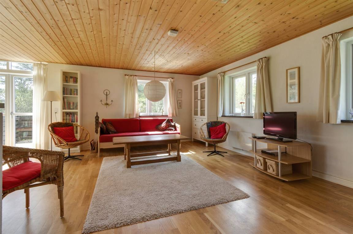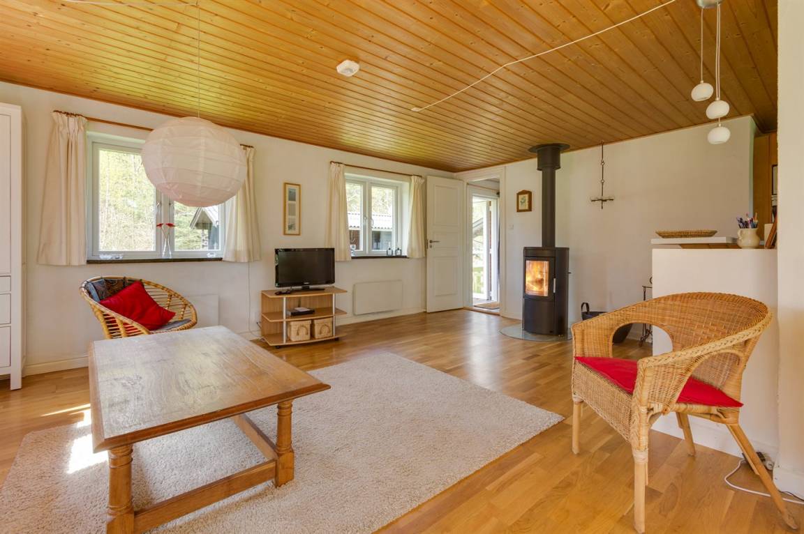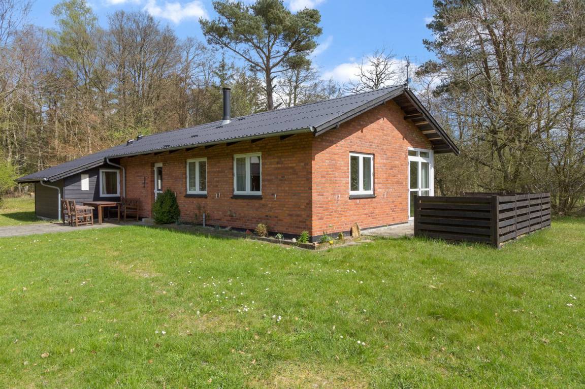 Gemütliches Ferienhaus nur 250 m vom Sandbadestrand gelegen. Das Ferienhaus liegt ruhig und von Wald umgeben.