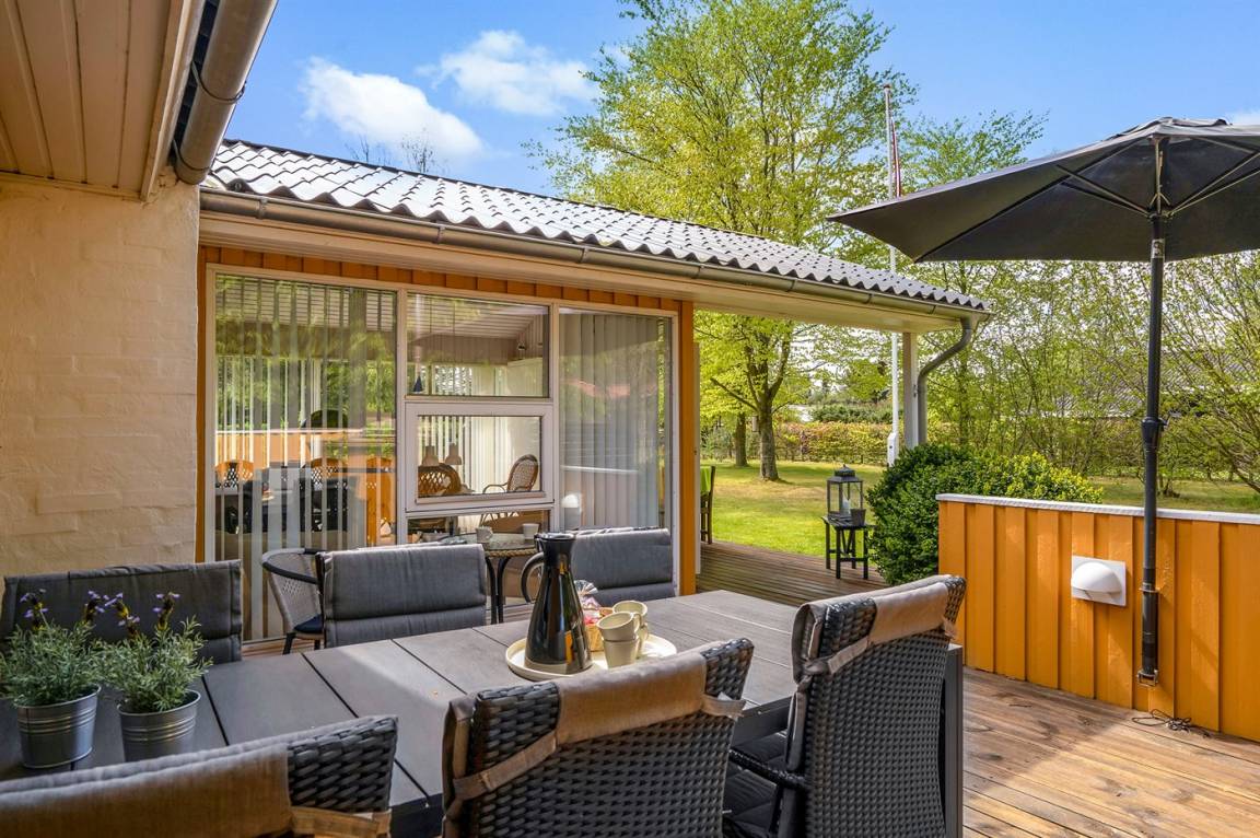 Gemütliches und gepflegtes Ferienhaus, zwischen Hou und Hals. Das Grundstück ist eingezäunt und mit Rasen. Teilweise überdachte Terrasse mit Gartenmöbeln, Sonnenliege, Grill und für die Kinder gibt es ein Sandkasten.