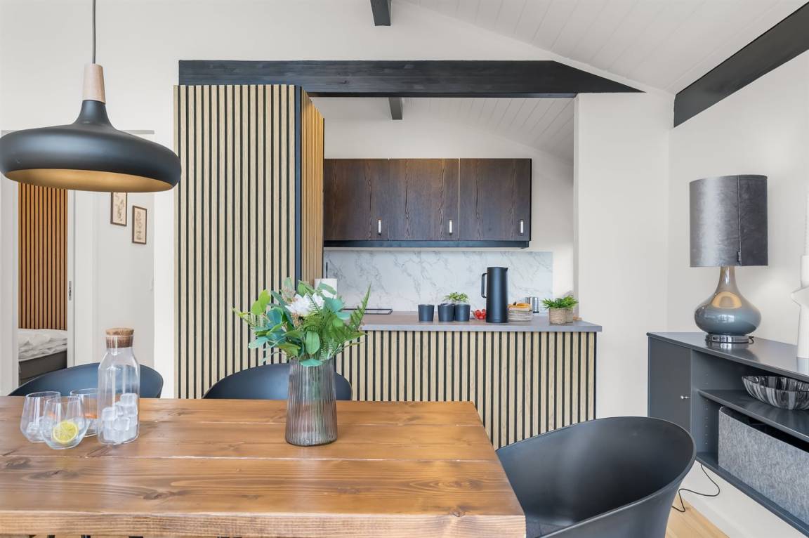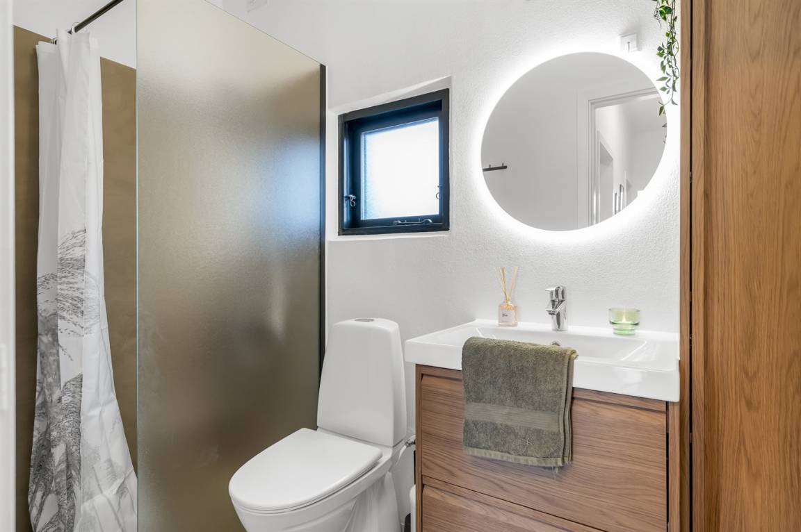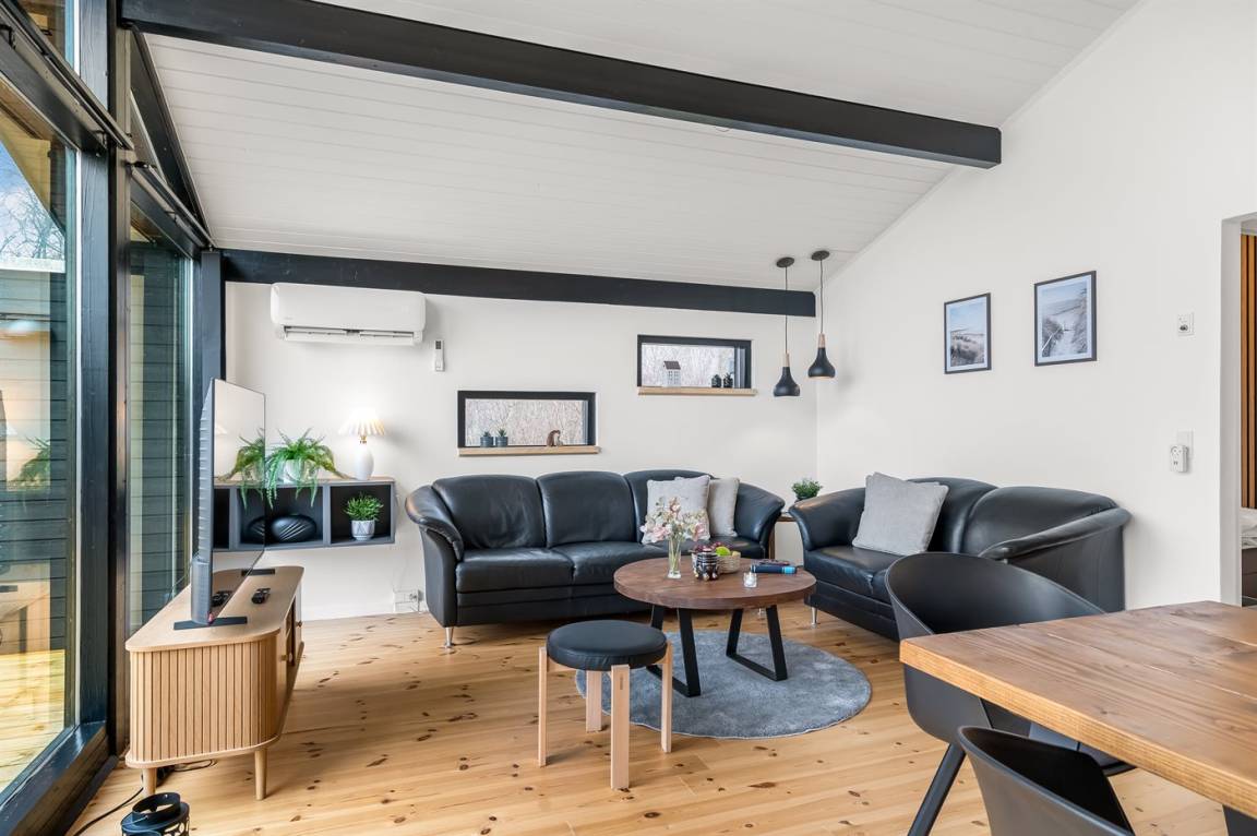 Du hast Platz für 6 Erwachsene + 1 Haustier, und das Grundstück ist vollständig eingezäunt, sodass sich sowohl Kinder als auch Hund sicher bewegen können. Genieße die langen Sommerabende auf der überdachten oder offenen Terrasse mit Grill und versammle die Familie am gemütlichen Lagerfeuerplatz.