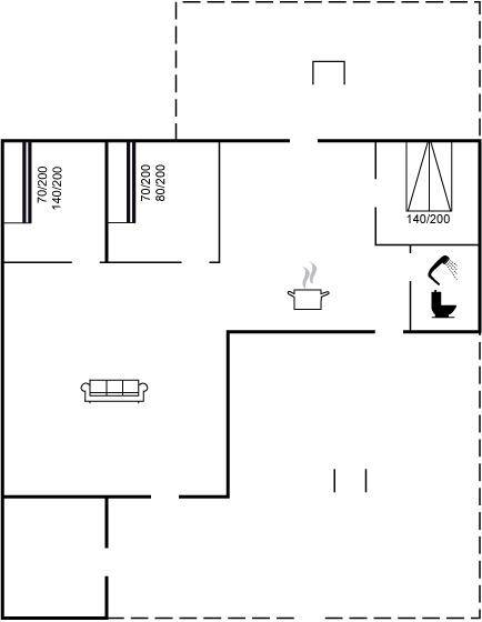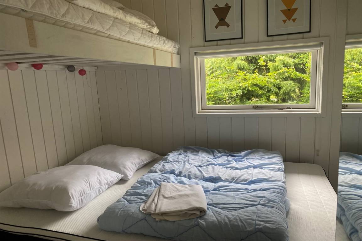 SchlafverhältnisseDie Schlafplätze verteilen sich auf 3 Schlafräume. 4 Schlafplätze in Doppelbetten. 3 Schlafplätze in Etagenbetten.