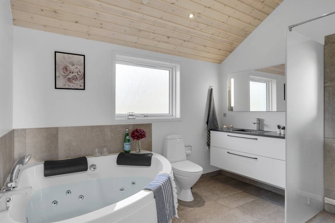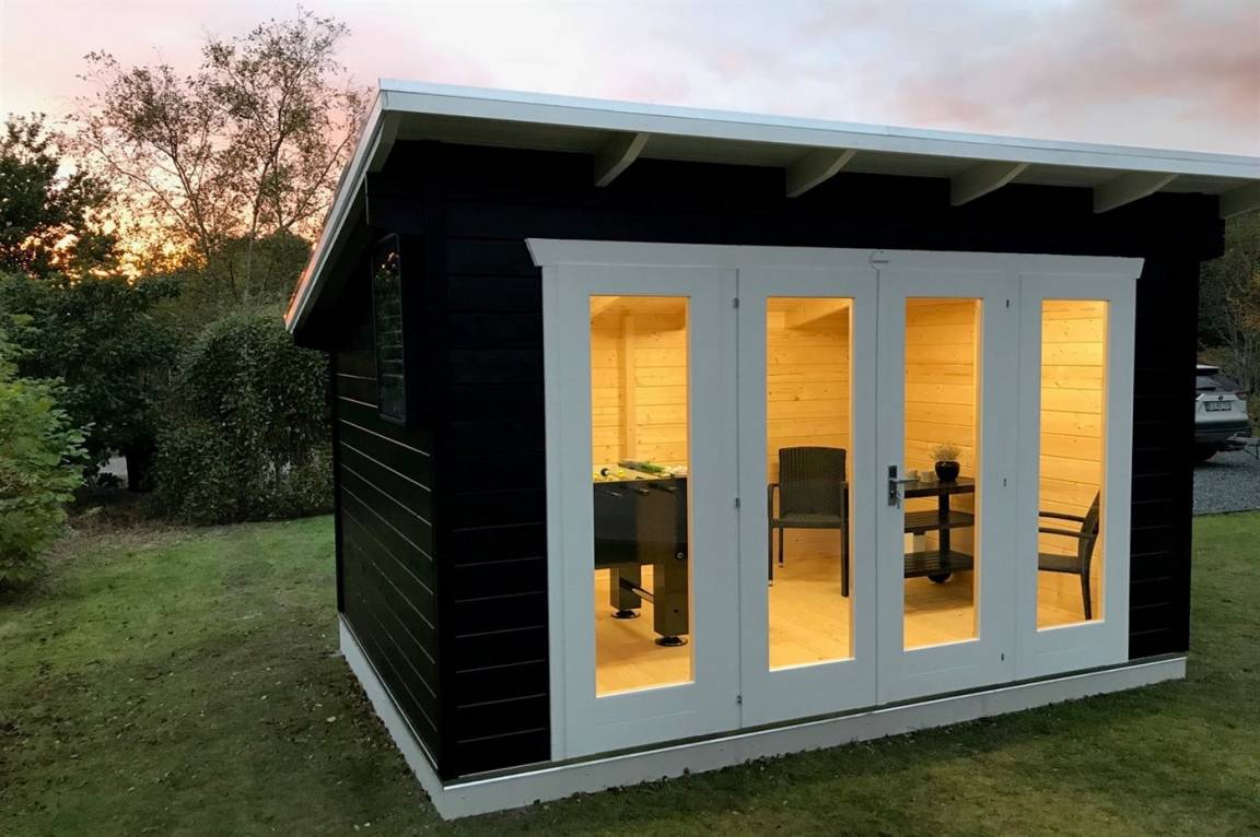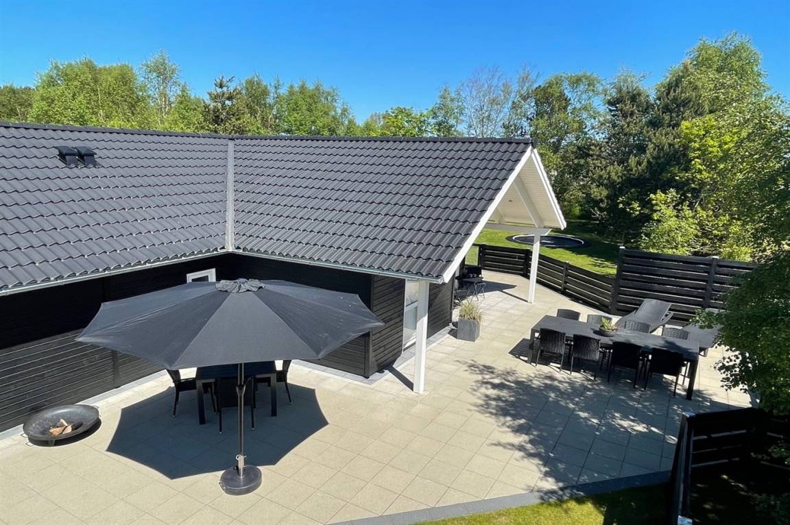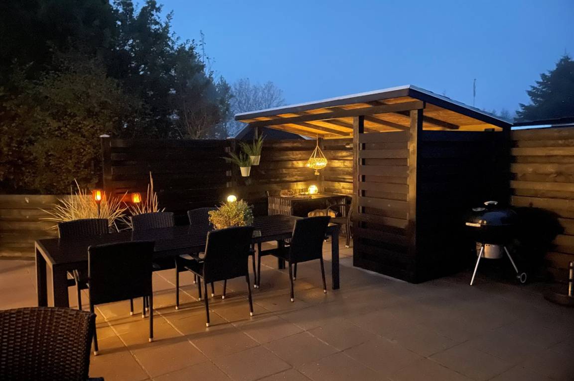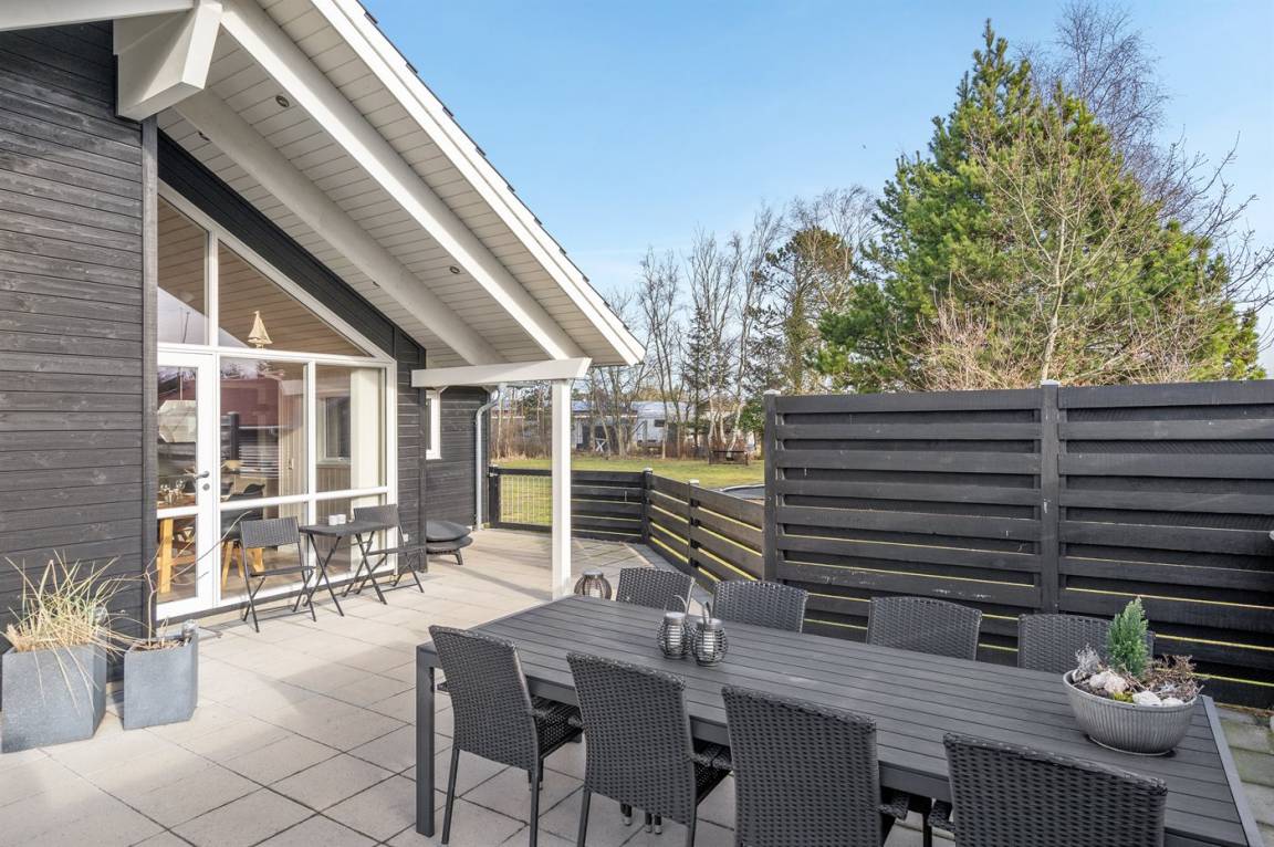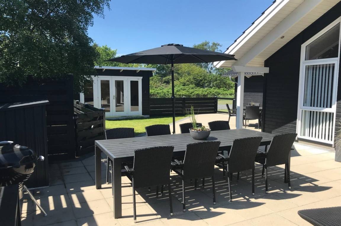 DraußenDie Ferienunterkunft liegt auf einem 1008 m² großen Gartengrundstück. Die Entfernung zum Meer beträgt 400 m. Die Entfernung zum Fjord beträgt 6000 m. Die Entfernung zu einem See beträgt 500 m. Die nächste Einkaufsmöglichkeit liegt 3000 m entfernt. In einem Abstand von 6000 m gibt es einen Golfplatz. Es steht ein 78 m² Terrassenareal zur Verfügung. Außerdem gibt es 9 m² überdachte Terrasse. Davon insgesamt 87 m² geschlossene Terrasse. Trampolin. Petanque. Fußballtor. Es steht ein Grill zur Verfügung. Parkplatz auf dem Grundstück.