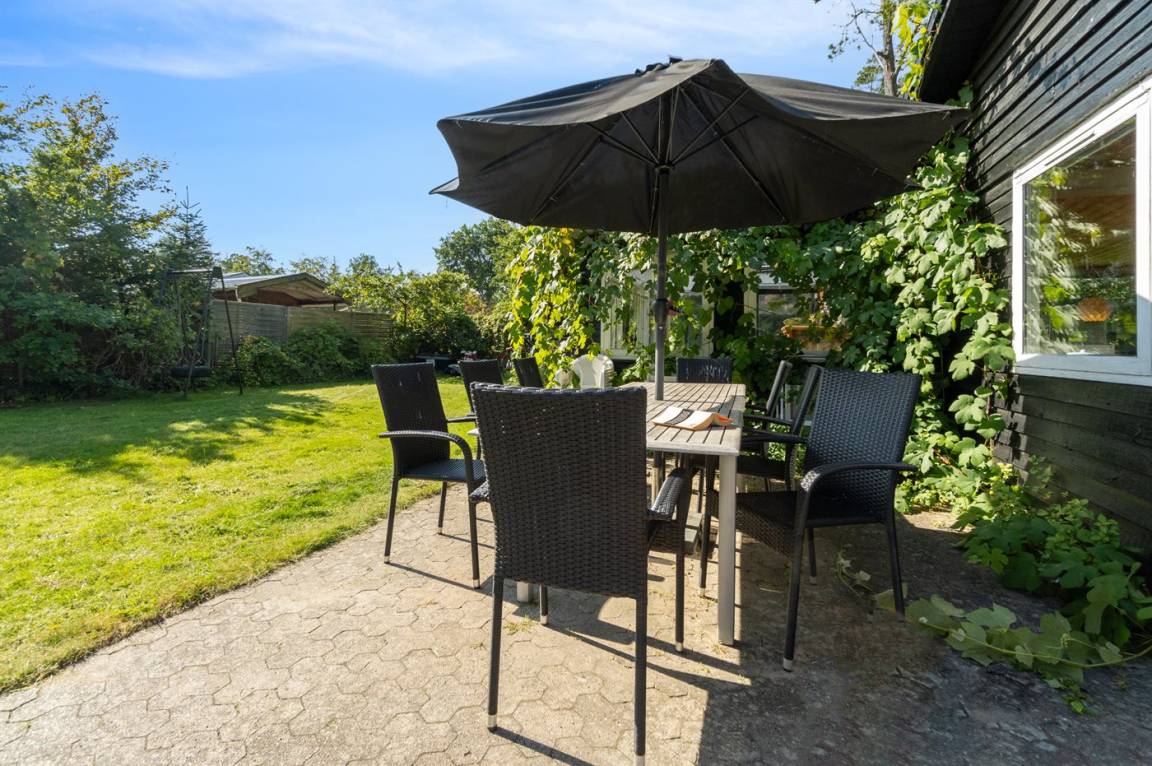 DraußenDie Ferienunterkunft liegt auf einem 1600 m² großen Gartengrundstück. Das Grundstück ist eingezäunt. Die Entfernung zum Meer beträgt 650 m. Die nächste Einkaufsmöglichkeit liegt 2500 m entfernt. Es steht ein 60 m² Terrassenareal zur Verfügung. Außerdem gibt es 8 m² überdachte Terrasse. Schaukel. Sandkasten.Lagerfeuerstelle. Es stehen 2 Grills zur Verfügung. Es ist ein Ladestecker für Elektroautos installiert. Parkplatz auf dem Grundstück.