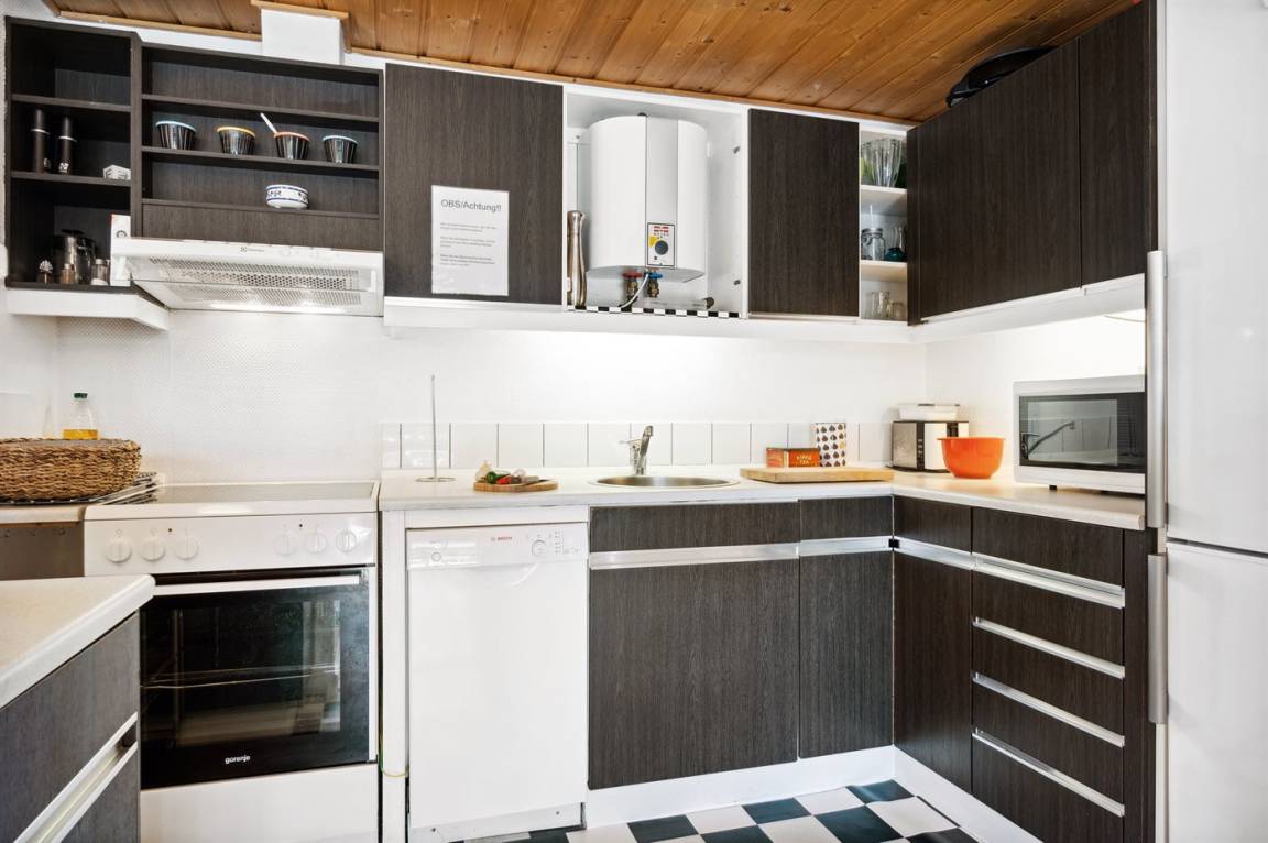 KücheDie Küche ist mit Kühlschrank ausgestattet. Außerdem gibt es 4 Keramik-Kochfelder, Umluftofen, Mikrowelle sowie Geschirrspüler.