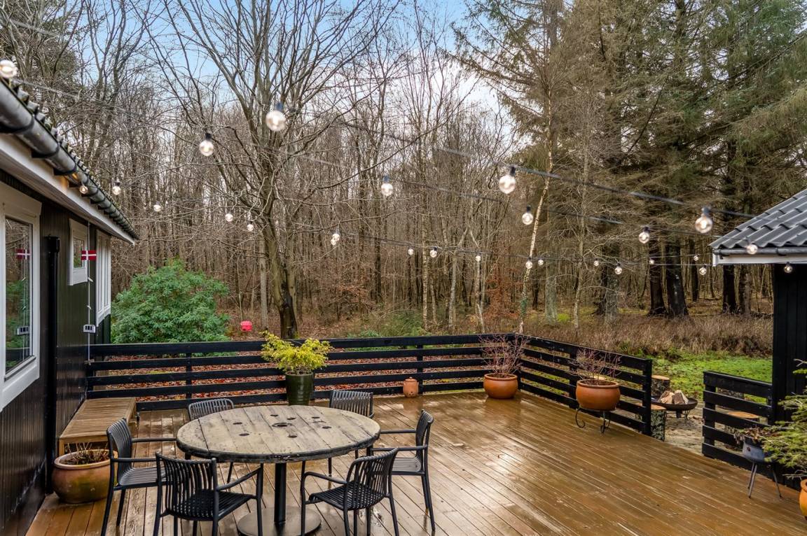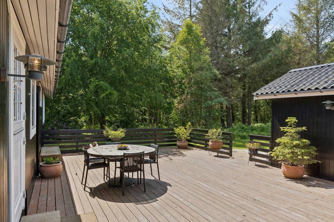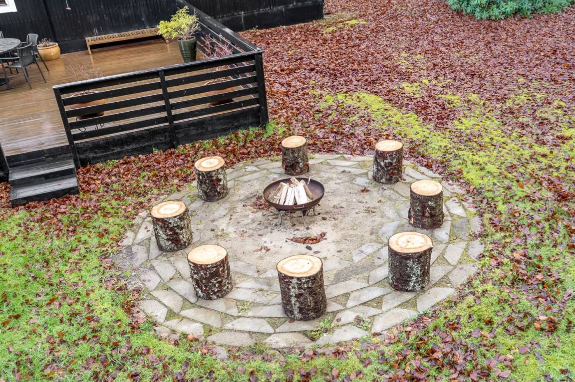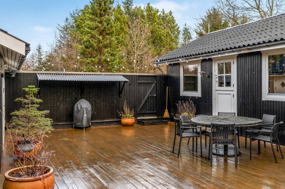 Die große, geschützte Terrasse lädt von morgens bis abends zum Entspannen ein, und von hier aus hast du den schönsten Blick auf die Natur. Hier gibt es ein reiches Tierleben – wo sowohl Hasen, Fasane, Eichhörnchen als auch Rehe oft vorbei schauen.