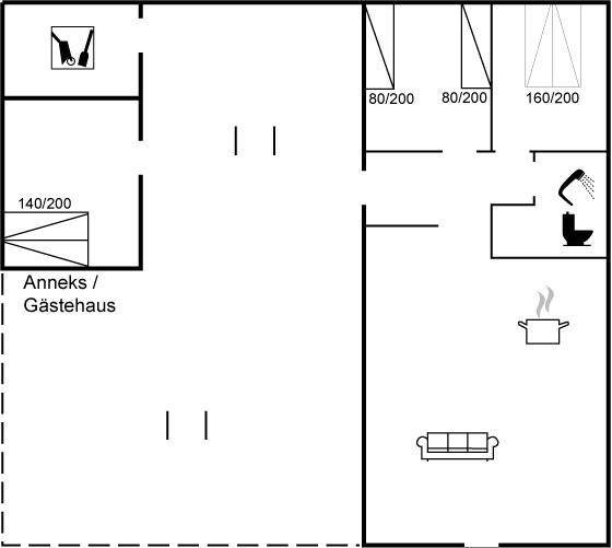 SchlafverhältnisseDie Schlafplätze verteilen sich auf 3 Schlafräume. 4 Schlafplätze in Doppelbetten. 2 Schlafplätze in Einzelbetten. 2 von diesen Schlafplätzen befinden sich im Gästehaus. Ferner steht ein Kinderbett zur Verfügung.