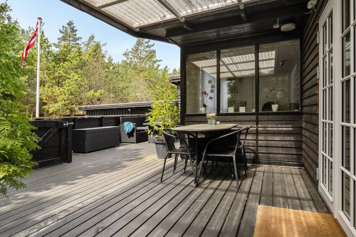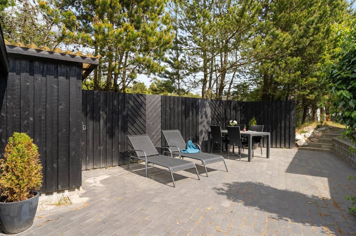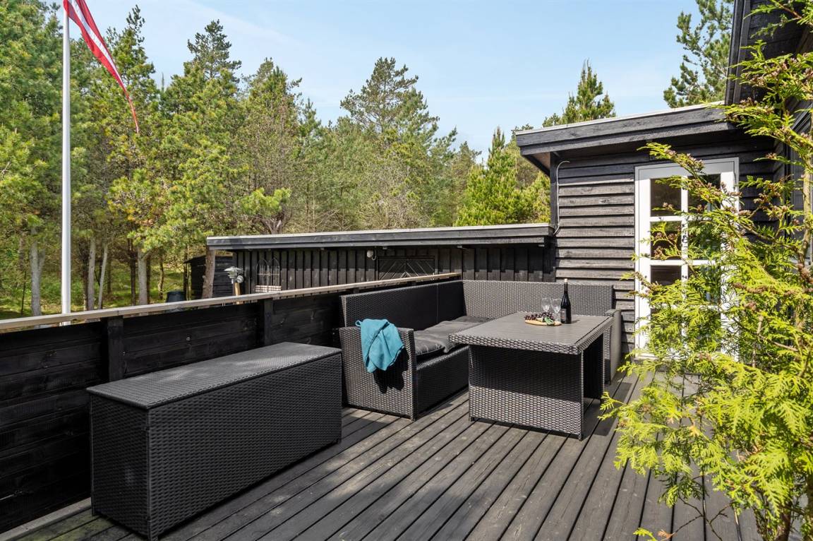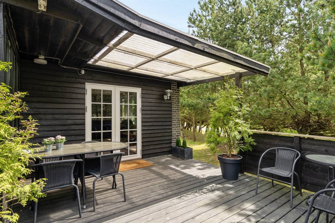 DraußenDie Ferienunterkunft liegt auf einem 1000 m² großen Naturgrundstück. Das Grundstück ist eingezäunt. Die Entfernung zum Meer beträgt 450 m. Die Entfernung zum Fjord beträgt 6000 m. Die Entfernung zu einem See beträgt 2000 m. Die nächste Einkaufsmöglichkeit liegt 5000 m entfernt. In einem Abstand von 4500 m gibt es einen Golfplatz. Es steht ein 75 m² Terrassenareal zur Verfügung. Außerdem gibt es 12 m² überdachte Terrasse. Geräteraum.Lagerfeuerstelle. Es steht ein Carport zur Verfügung. Parkplatz auf dem Grundstück.