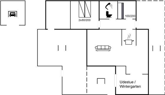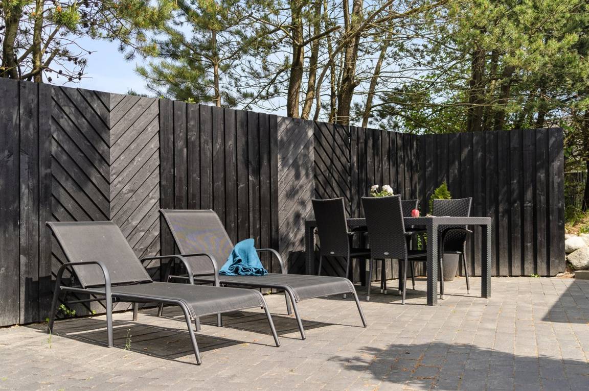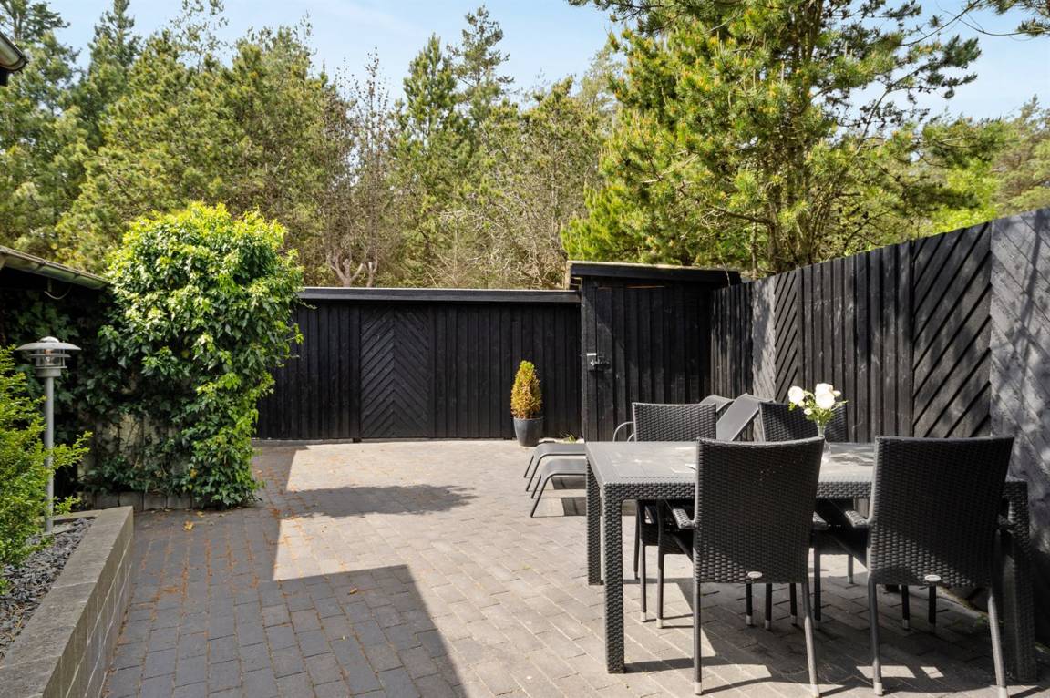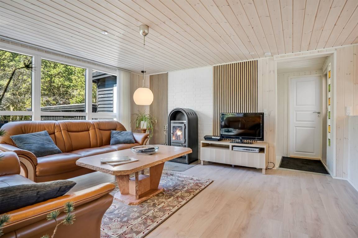 DraußenDie Ferienunterkunft liegt auf einem 1000 m² großen Naturgrundstück. Das Grundstück ist eingezäunt. Die Entfernung zum Meer beträgt 450 m. Die Entfernung zum Fjord beträgt 6000 m. Die Entfernung zu einem See beträgt 2000 m. Die nächste Einkaufsmöglichkeit liegt 5000 m entfernt. In einem Abstand von 4500 m gibt es einen Golfplatz. Es steht ein 75 m² Terrassenareal zur Verfügung. Außerdem gibt es 12 m² überdachte Terrasse. Geräteraum.Lagerfeuerstelle. Es steht ein Carport zur Verfügung. Parkplatz auf dem Grundstück.