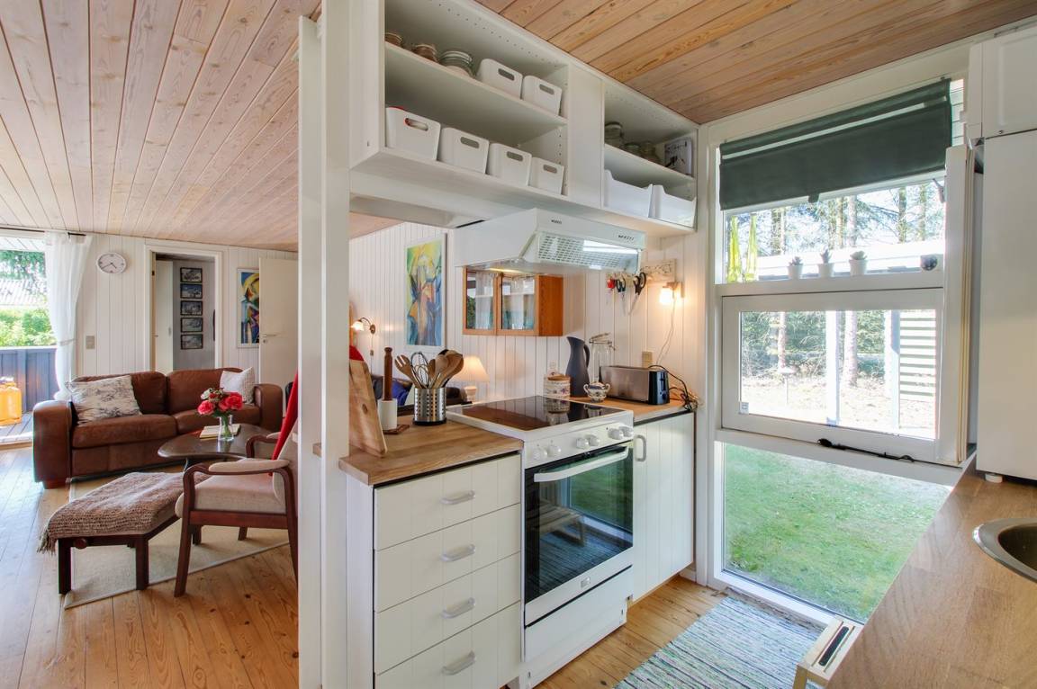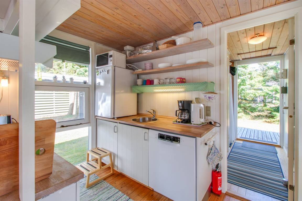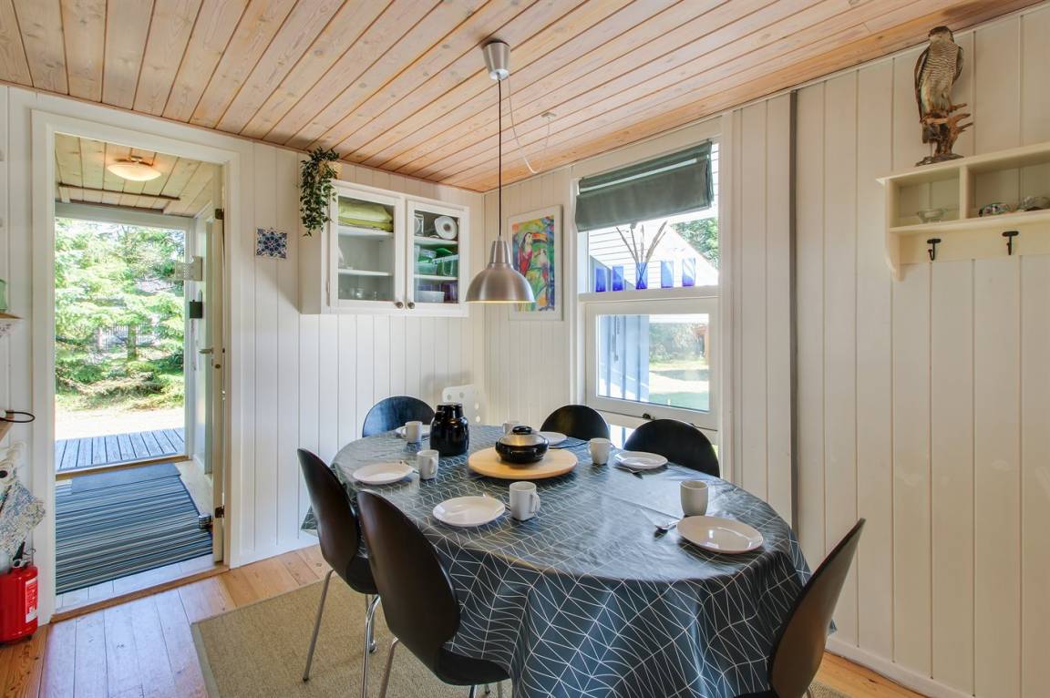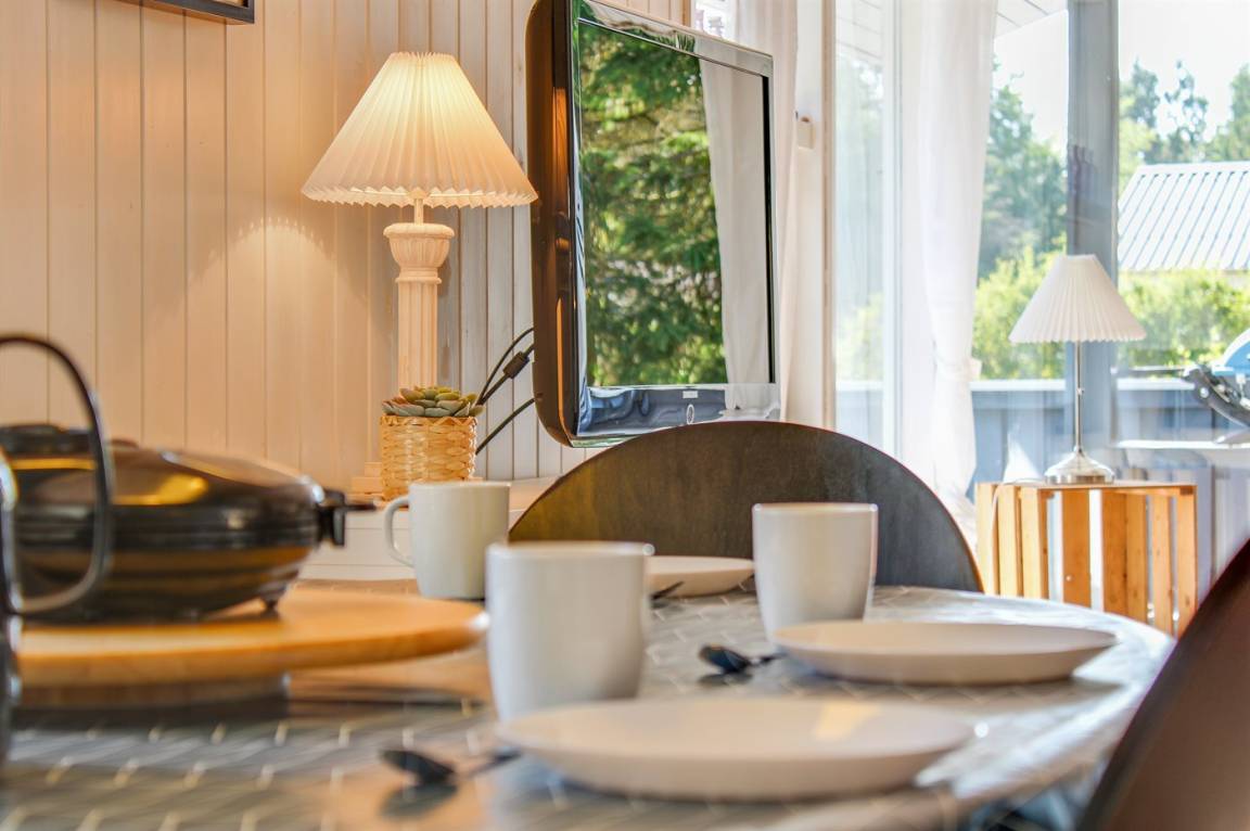 „The vacation at the holiday home: Pris afspejler måske pris, men dog var der ting man ikke kunne være forberedt på. Der var dårlig lugt på badeværelset, og sommerhuslugten noget stram på det bagerste værelse. Ingen stige til køjesengen. Udover det er svært at kravle op når man kun er 5 år, så er det også farligt. Fag af rækværket ved terrassen var væk, vi fjernede skrue der strittede op. Der var et stort bordbænk sæt på plænen. Det var ikke velegnet at spise ved, med små børn og ældre mennesker. Herudover var der 2 små caféborde. Græsset var heller ikke slået (ikke at det var nødvendigt på hele grunden, men omkring fx bord og et sted til leg) Generelt virkede huset "træt". Badet var ikke så lækkert, med sort? i bunden. Vi kontaktede jer, fordi flere lamper ikke lyste. I var søde og undersøge hvor der var nye pærer, som vi skiftede. Et lysstofrør i køkkenet virkede ikke. Vi fik at vide vi gerne måtte købe et nyt og få det refunderet. Vi fandt ud af, at når lampen var tændt i nogle minutter lyste det. Det var jo okay, men havde været fint hvis det var tjekket inden ankomst.“