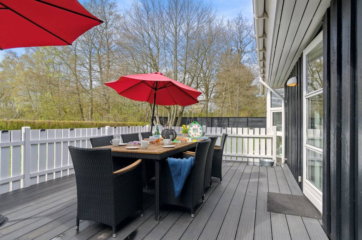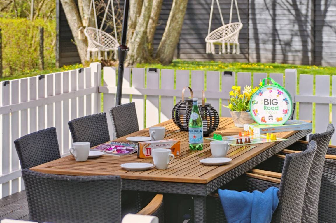 DraußenDie Ferienunterkunft liegt auf einem 1100 m² großen Gartengrundstück. Das Grundstück ist eingezäunt. Die Entfernung zum Meer beträgt 500 m. Die nächste Einkaufsmöglichkeit liegt 200 m entfernt. Es steht ein 70 m² Terrassenareal zur Verfügung. Davon insgesamt 24 m² geschlossene Terrasse. Schaukel. Sandkasten. Spielturm. Rutsche. Es steht ein Grill zur Verfügung. Es ist ein Ladestecker für Elektroautos installiert. Parkplatz auf dem Grundstück.