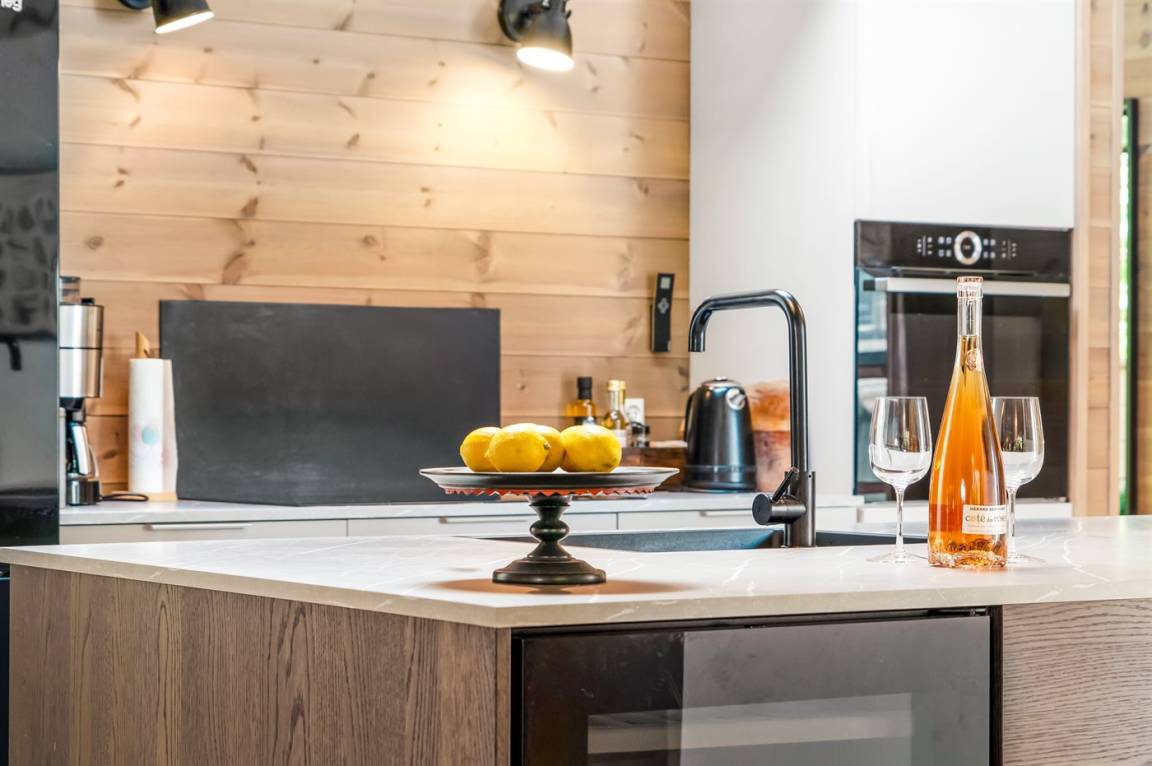 KücheDie Küche ist mit Kühlschrank ausgestattet. Außerdem gibt es 4 Induktions-Kochzonen, Umluftofen sowie Geschirrspüler. Ferner steht ein Weinkühlschrank zur Verfügung.