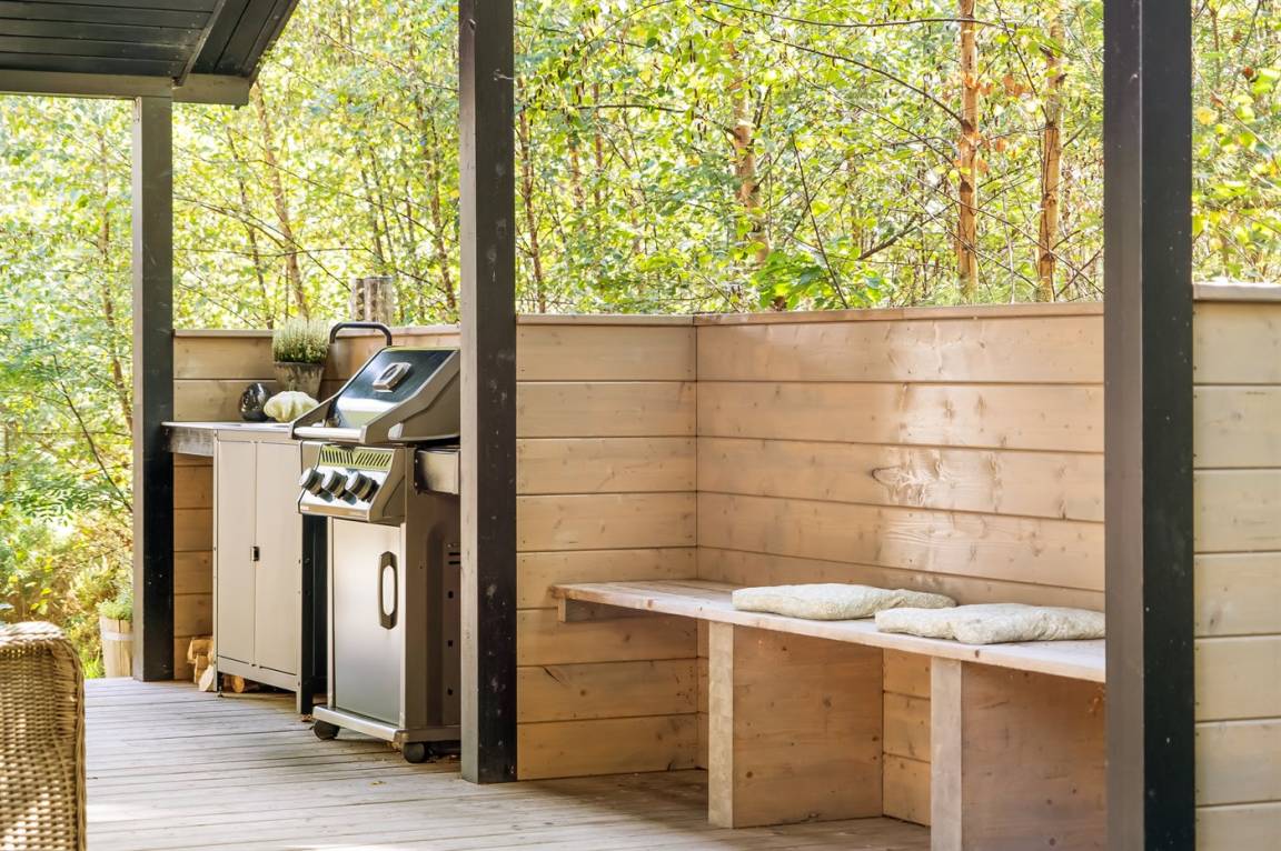 Genieße Stunden im Freien beim Zubereiten von Mahlzeiten in der tollen Außenküche, nimm eine erfrischende Dusche unter der Außendusche mit kaltem und warmem Wasser oder entspanne dich im Hot-Tub unter freiem Himmel.