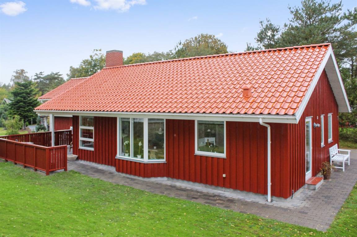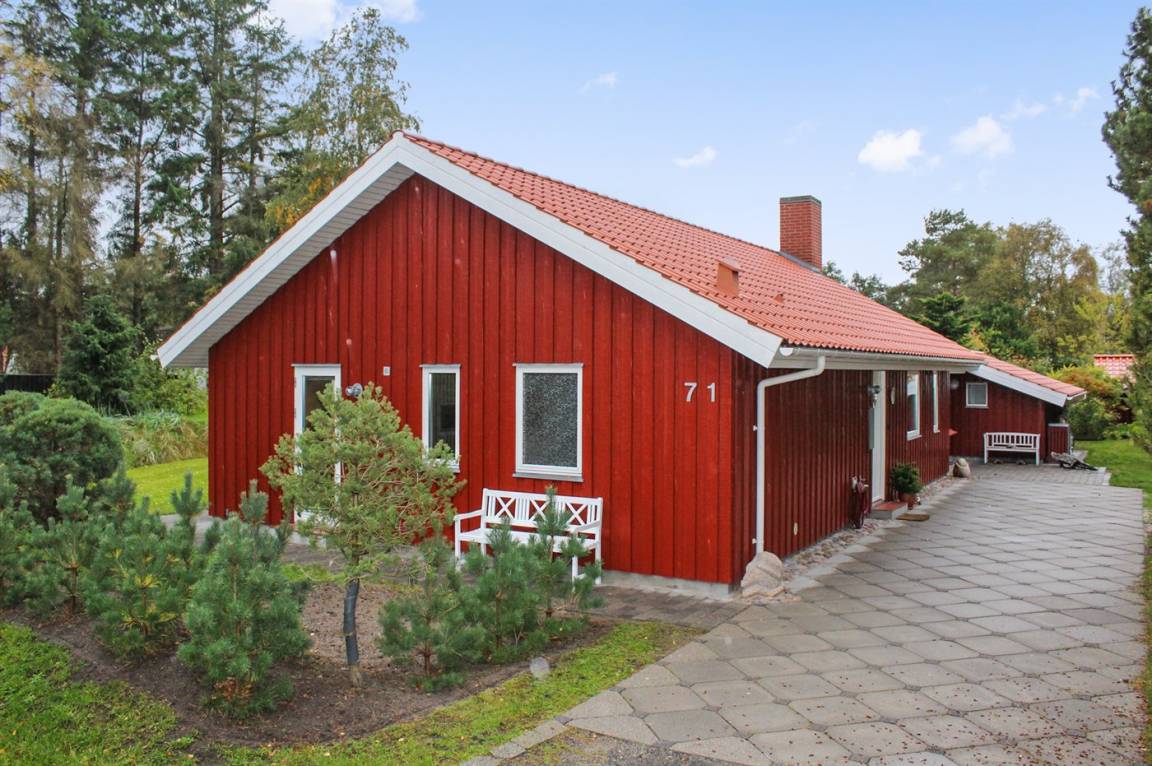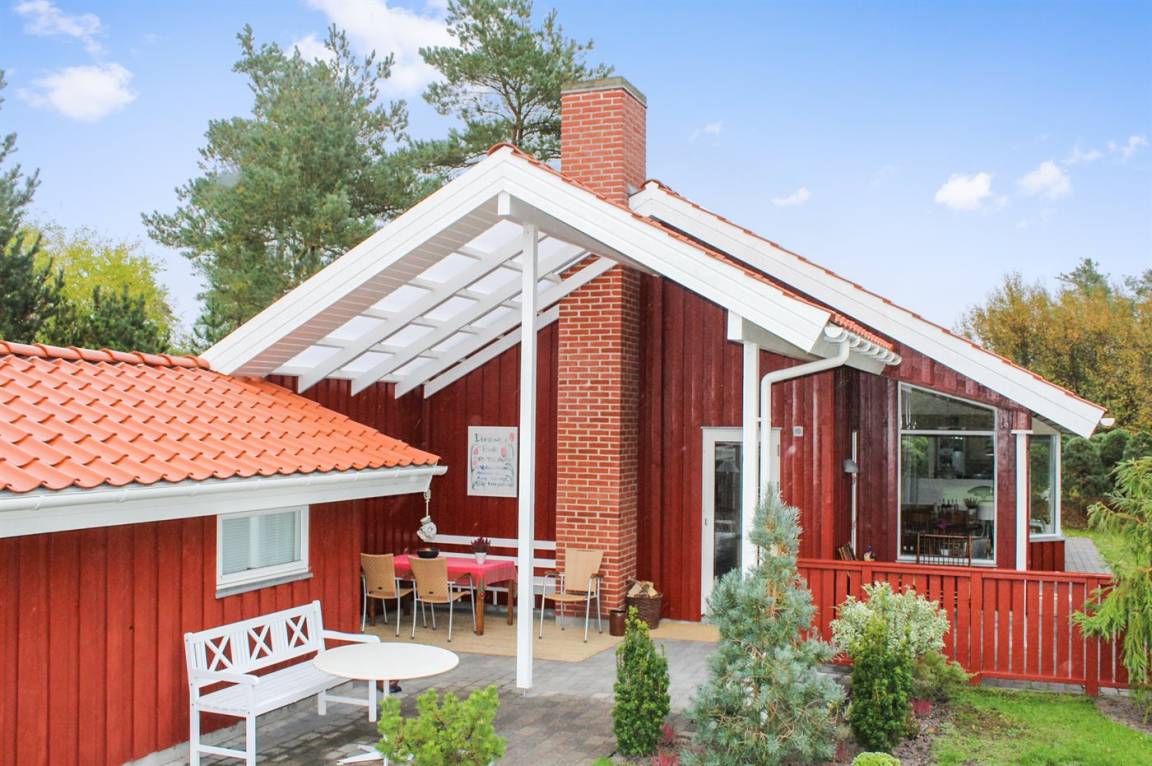 Sehr schönes Ferienhaus, dicht am Sandbadestrand. Die Lage ist sehr ruhig und das Ferienhaus liegt naturschön. Teilweise überdachte Terrasse mit Gartenmöbeln, Sonnenliege und Sandkasten ist auch vorhanden.