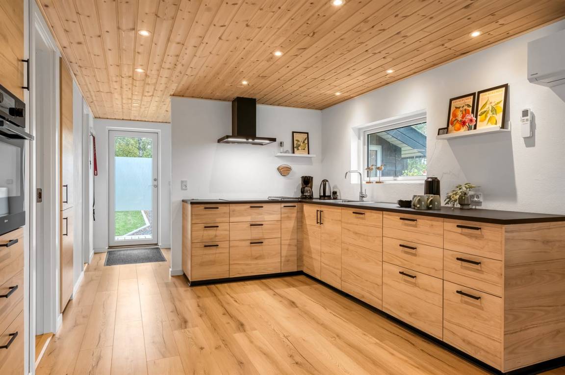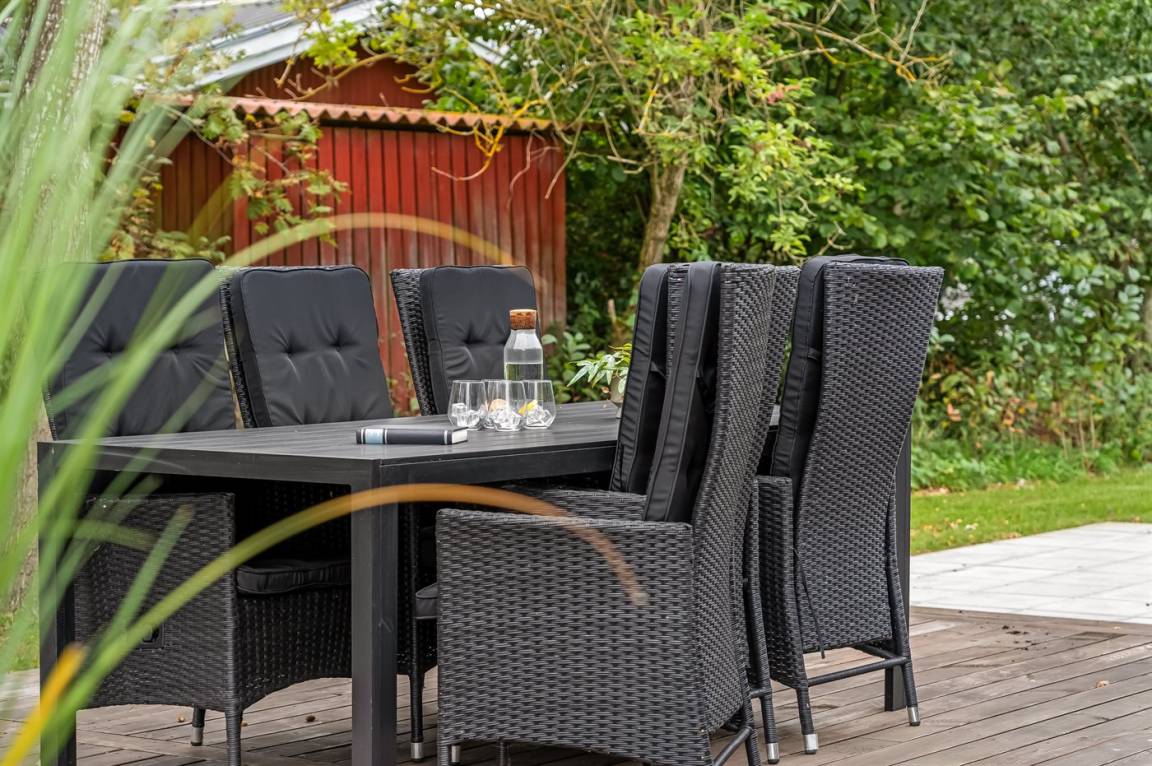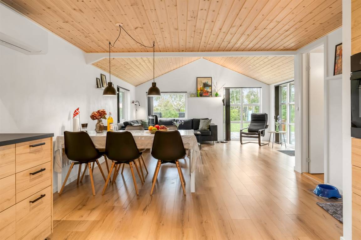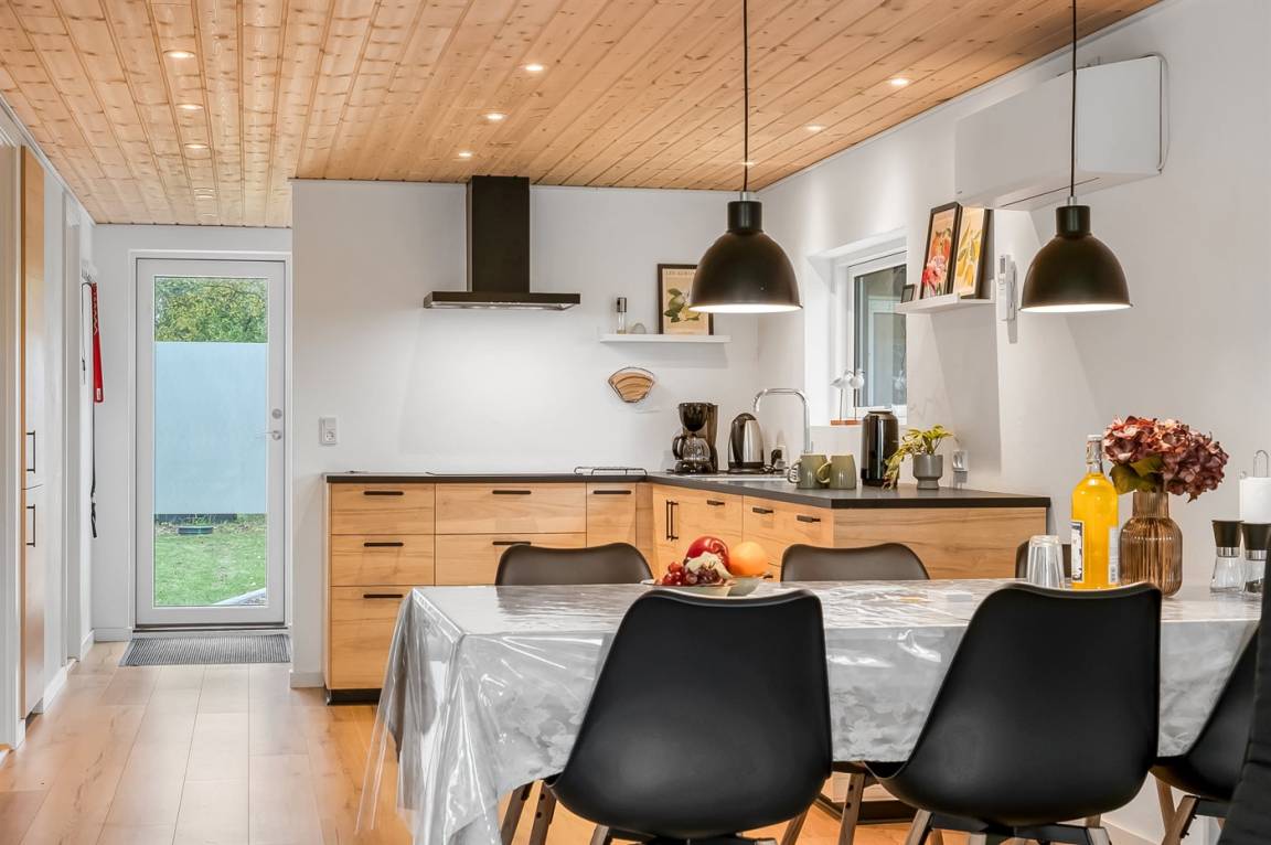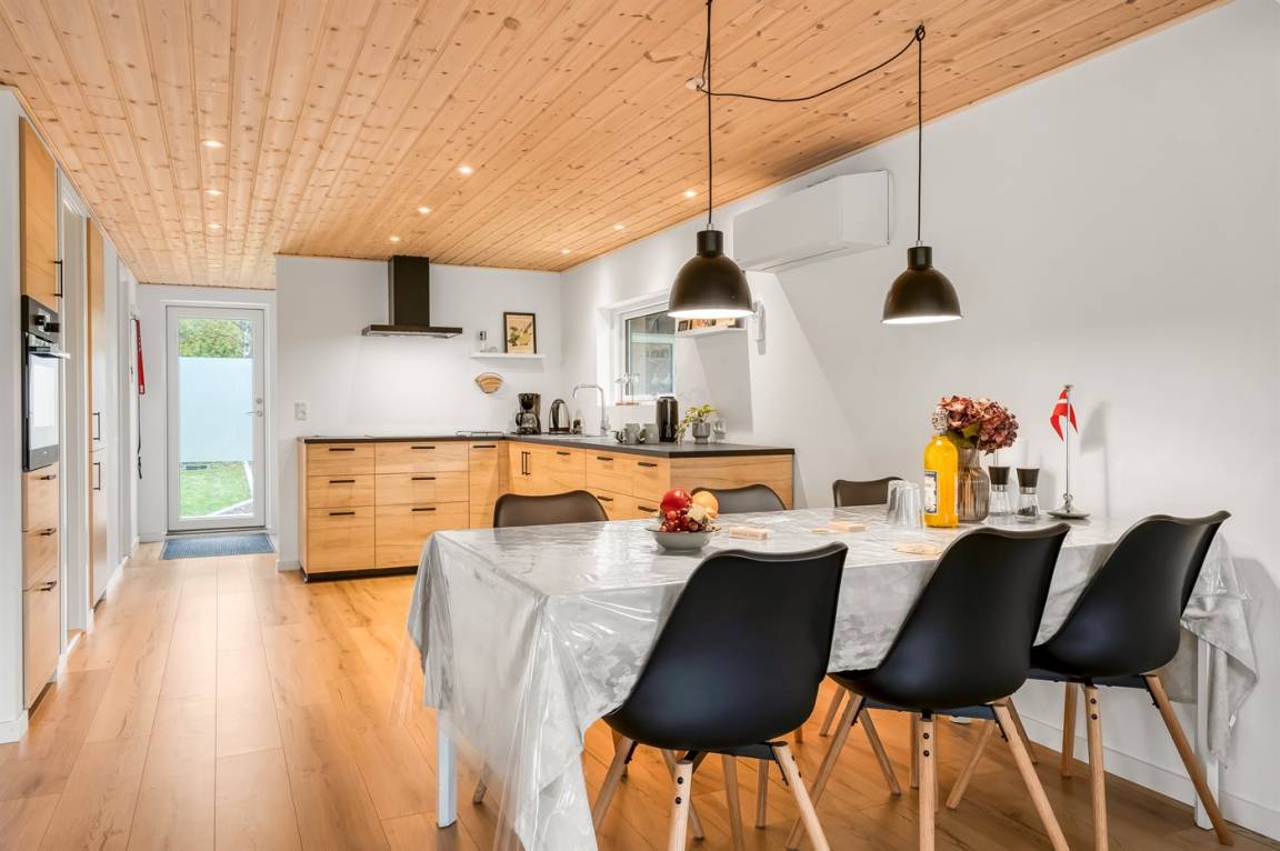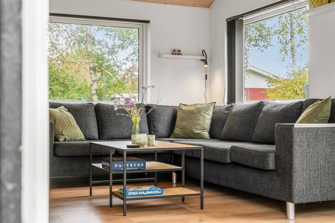DraußenDie Ferienunterkunft liegt auf einem 1110 m² großen Gartengrundstück. Die Entfernung zum Meer beträgt 870 m. Die Entfernung zum Fjord beträgt 5800 m. Die nächste Einkaufsmöglichkeit liegt 2100 m entfernt. In einem Abstand von 5280 m gibt es einen Golfplatz. Es steht ein offenes Terrassenareal zur Verfügung. Außerdem gibt es überdachte Terrasse. Schaukel. Sandkasten. Rutsche. Es stehen zwei Grill zur Verfügung (einer für Gas und einer für Kohle). Parkplatz auf dem Grundstück.