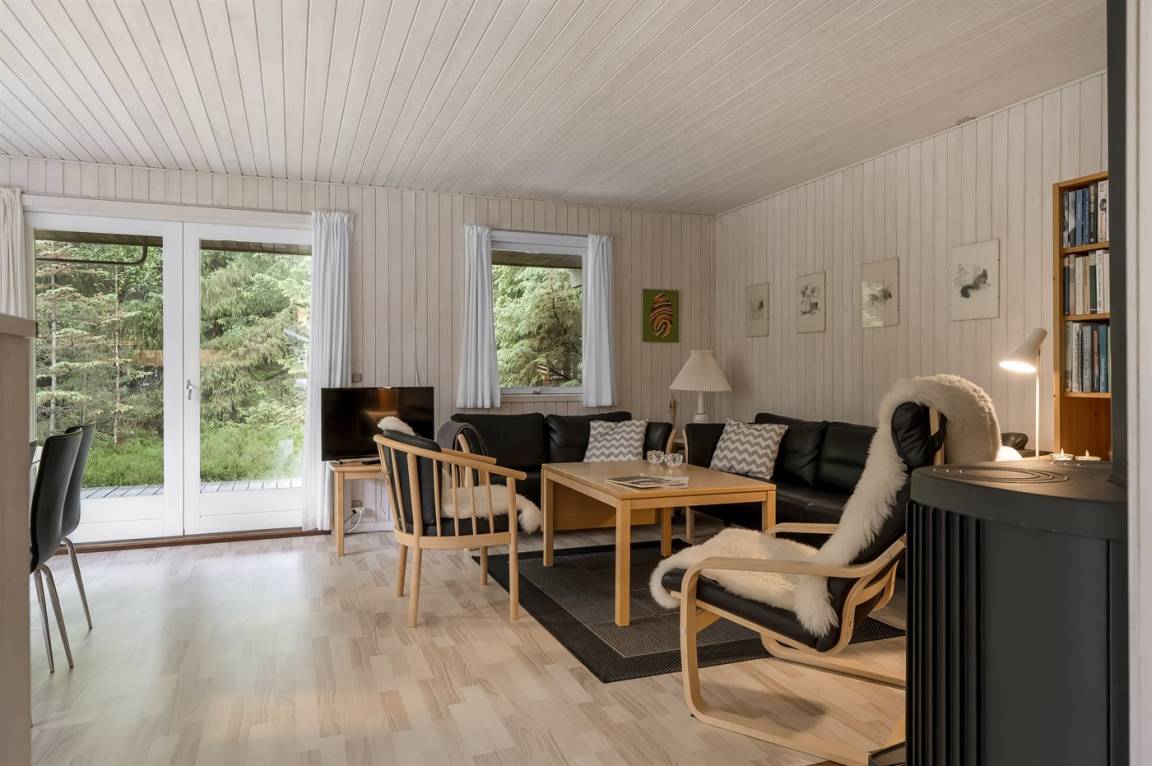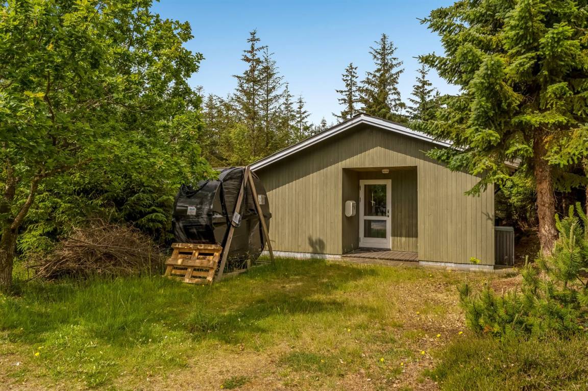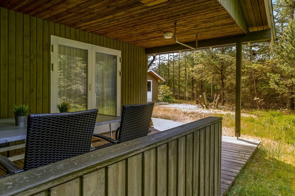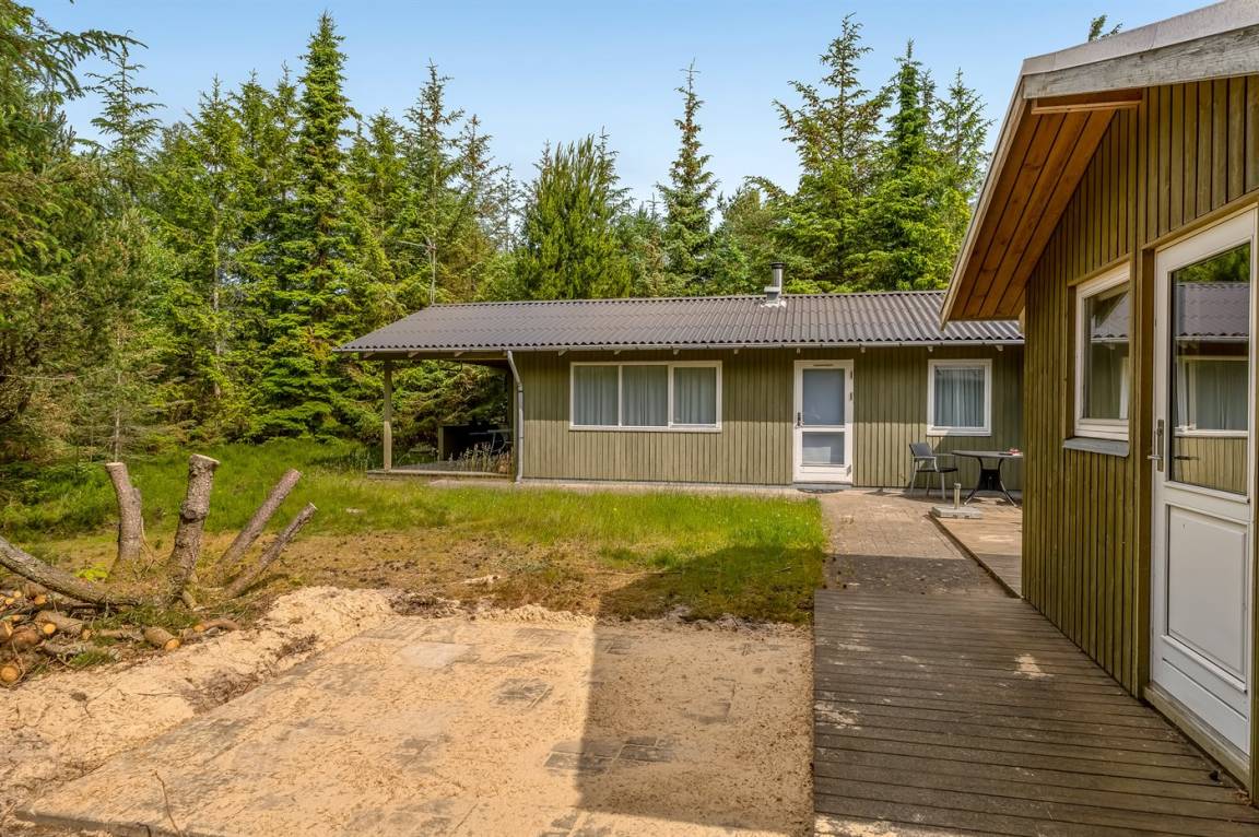 Ein nettes Ferienhaus mit ungestörter Lage auf einem schönen Naturgrundstück. Der Garten ist komplett privat und von Bäumen umgeben, welches eine friedliche und entspannte Atmosphäre schafft.