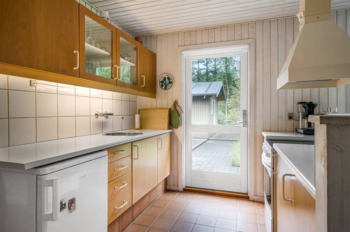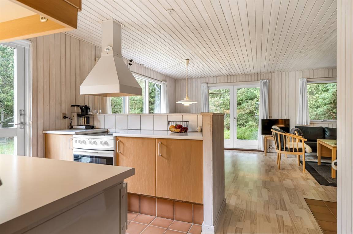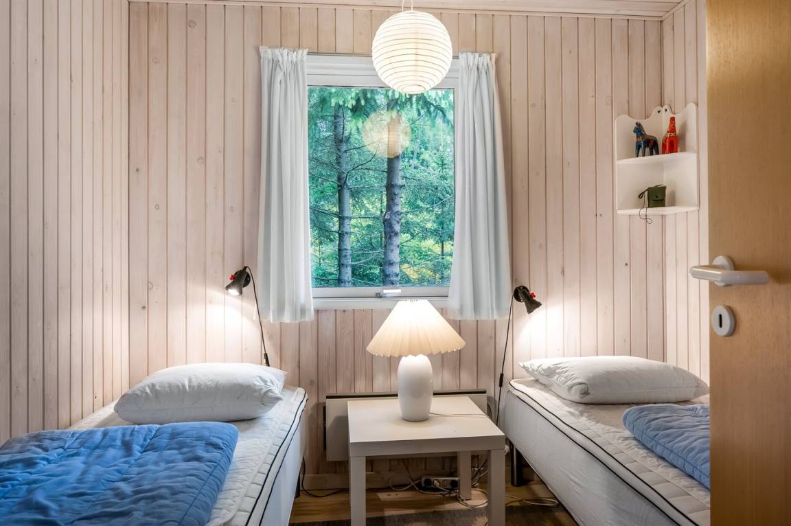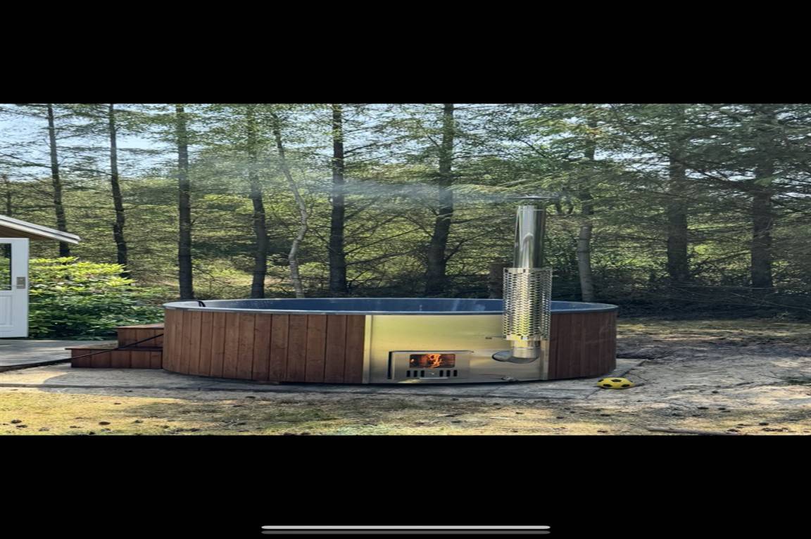 Ein nettes Ferienhaus mit ungestörter Lage auf einem schönen Naturgrundstück. Der Garten ist komplett privat und von Bäumen umgeben, welches eine friedliche und entspannte Atmosphäre schafft.