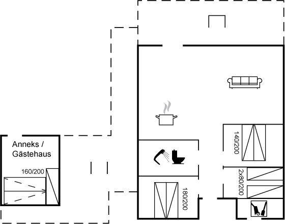 SchlafverhältnisseDie Schlafplätze verteilen sich auf 4 Schlafräume. 4 Schlafplätze in Doppelbetten. 3 Schlafplätze in Einzelbetten. 2 Schlafplätze auf einer Doppelschlafcouch. 2 von diesen Schlafplätzen befinden sich im Gästehaus.