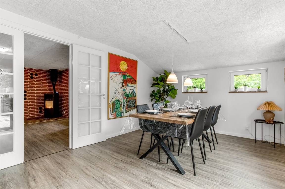 DraußenDie Ferienunterkunft liegt auf einem 1250 m² großen Gartengrundstück. Die Entfernung zum Meer beträgt 1140 m. Die Entfernung zum Fjord beträgt 4800 m. Die nächste Einkaufsmöglichkeit liegt 3030 m entfernt. In einem Abstand von 4300 m gibt es einen Golfplatz. Es steht ein offenes Terrassenareal zur Verfügung. Außerdem gibt es überdachte Terrasse. Es steht ein Grill zur Verfügung. Es steht ein Carport zur Verfügung. Parkplatz auf dem Grundstück.