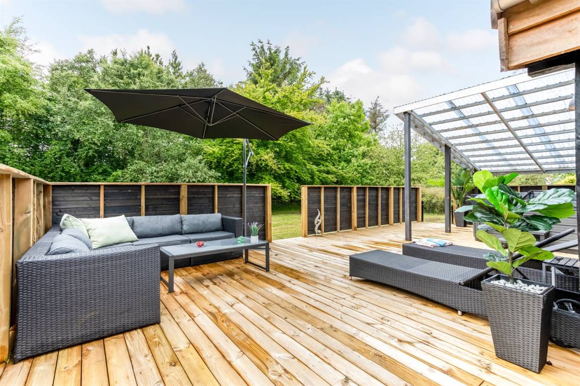 Das Ferienhaus bietet euch eine beeindruckende, komplett eingezäunte Terrasse von 125 m², auf der ihr die Sonne und den Urlaub in privater und sicherer Atmosphäre genießen könnt. Zusätzlich gibt es einen fantastischen, umzäunten Hundegarten von 90 m² mit einem feinmaschigen Zaun, damit selbst die kleinsten Hunde nicht entkommen können.