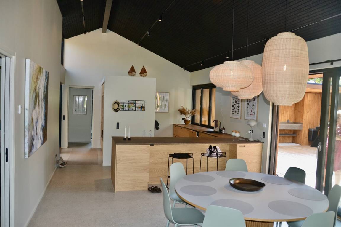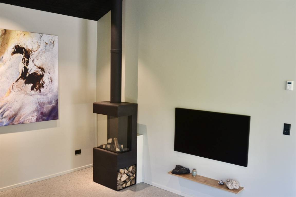 Der Küchenbereich verfügt über einen charmanten Alkoven, der mit großen Glasflächen gestaltet ist, um den feinen Blick auf die Terrasse und den Garten zu genießen. Die Küchenausstattung umfasst alles, was du zum Kochen benötigst. Ein einzigartiges Merkmal dieser Küche ist das große "Schiebefenster", das sich zur Terrasse hin öffnet und so eine schöne Verbindung zwischen Innen- und Außenbereich schafft. Das Wohnzimmer ist mit einem Gaskaminofen ausgestattet, der zu gemütlichen Abenden oder zum Verweilen an Regentagen einlädt.