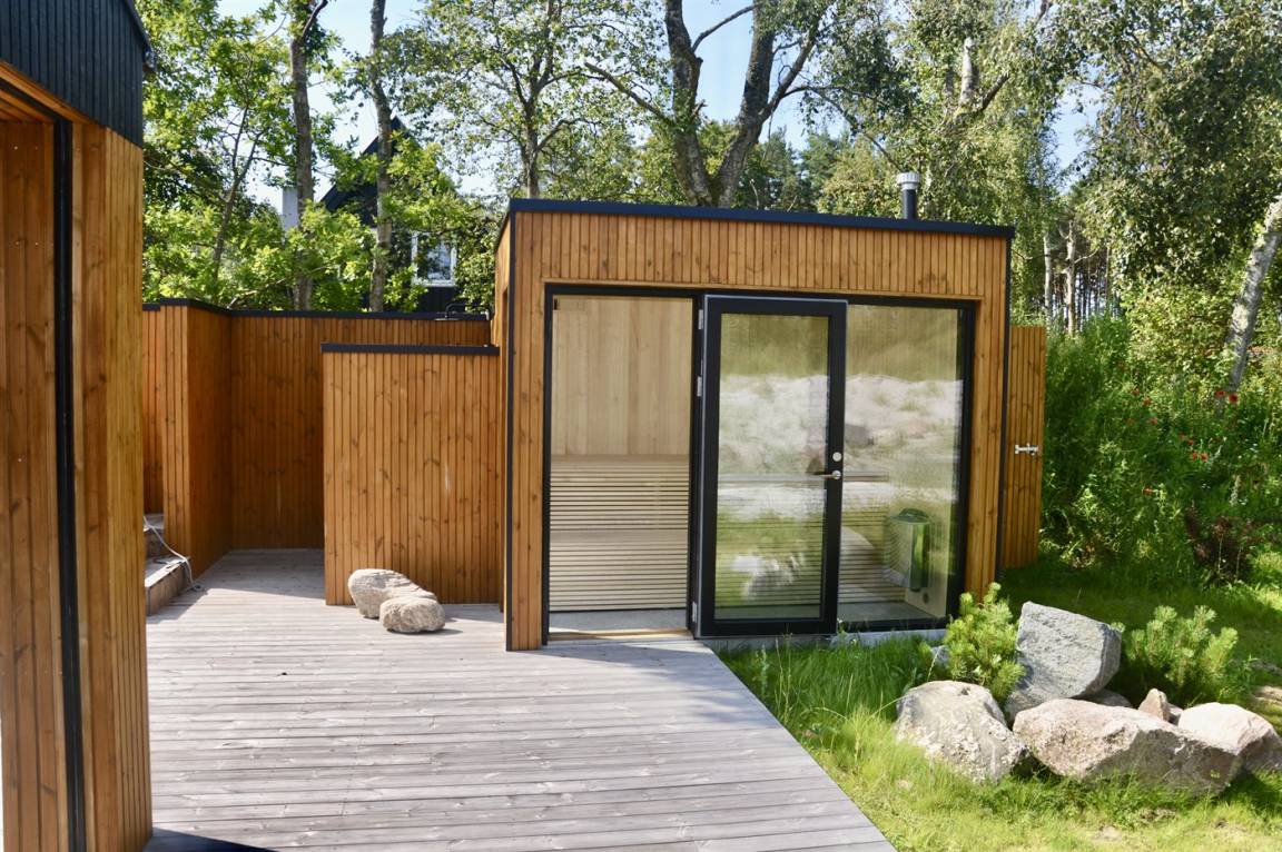 Die Außenbereiche sind genauso beeindruckend wie das Innere des Hauses. Die Terrasse ist 220 m² groß und verfügt über eine isolierte Außendusche, ein Bad im Freien für zwei Personen sowie eine Sauna, die von Glaswänden umgeben ist, sodass du die Natur genießen kannst, während du dich entspannst oder nach einem Schwimmen im Kattegat den Geist klärst. Das Kajak und die 2 Paddleboards können auf dem Meer in der Nähe des Hauses genutzt werden; Rettungswesten werden für deine Sicherheit während des Wassersports kostenlos zur Verfügung gestellt – die Nutzung erfolgt jedoch auf eigene Gefahr/Versicherung.