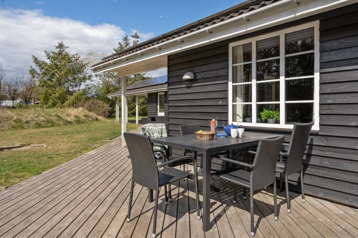 Es steht eine schöne, große Terrasse zur Verfügung, die teilweise überdacht ist. Hier kann man wunderbar abschalten oder das auf dem Grill zubereitete Abendessen genießen.