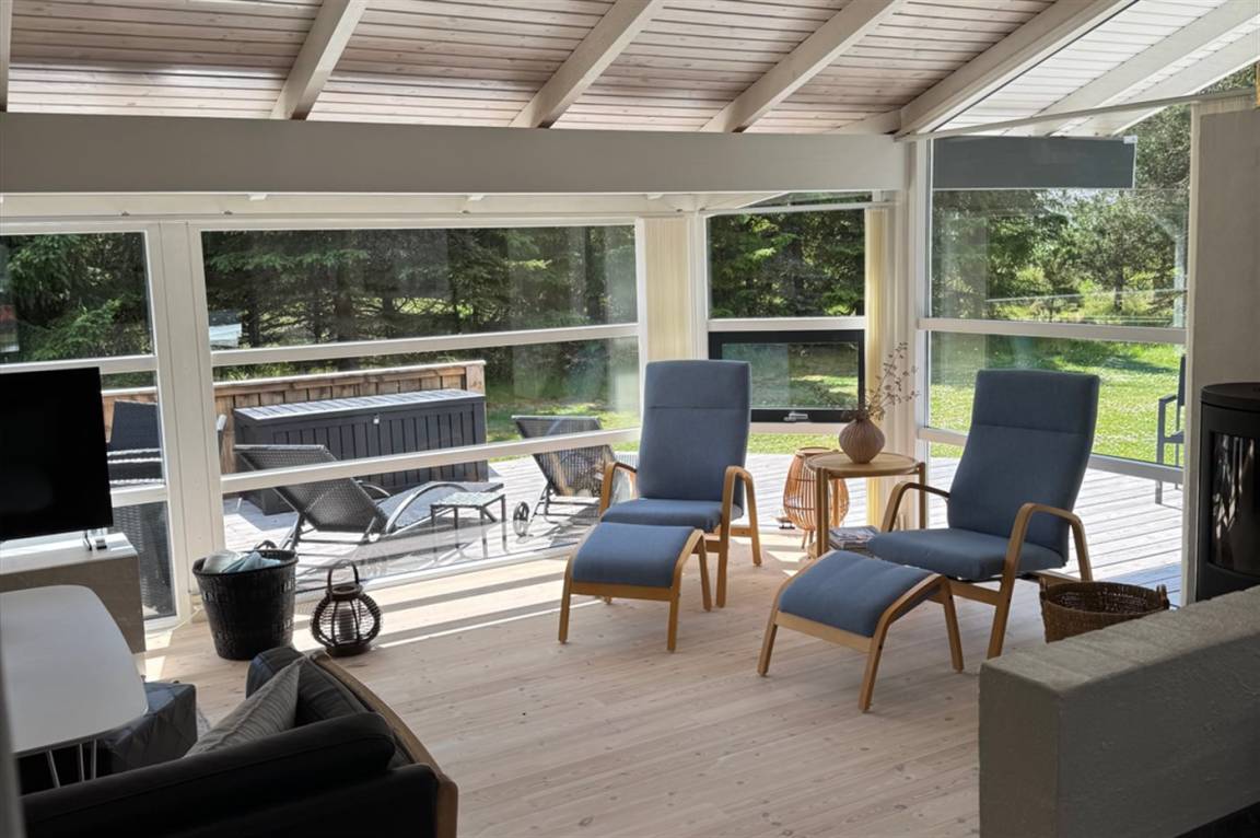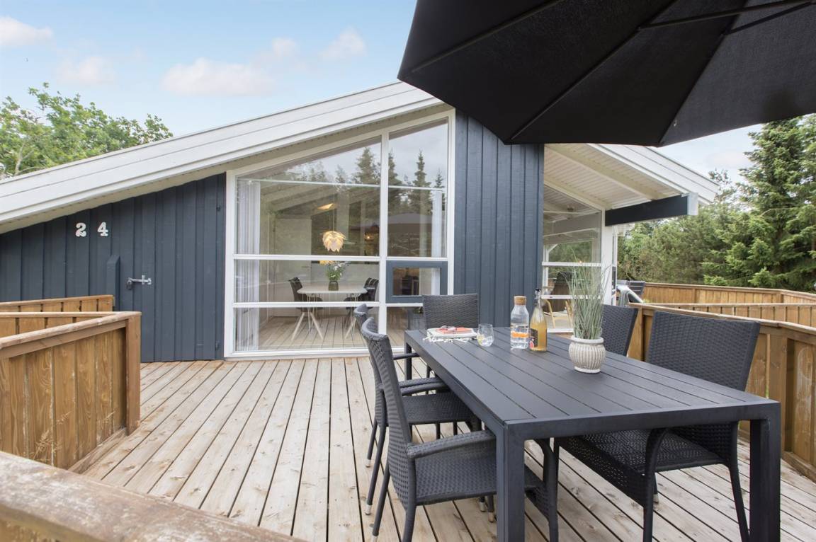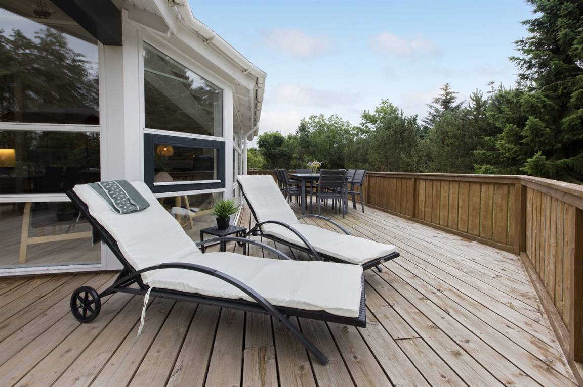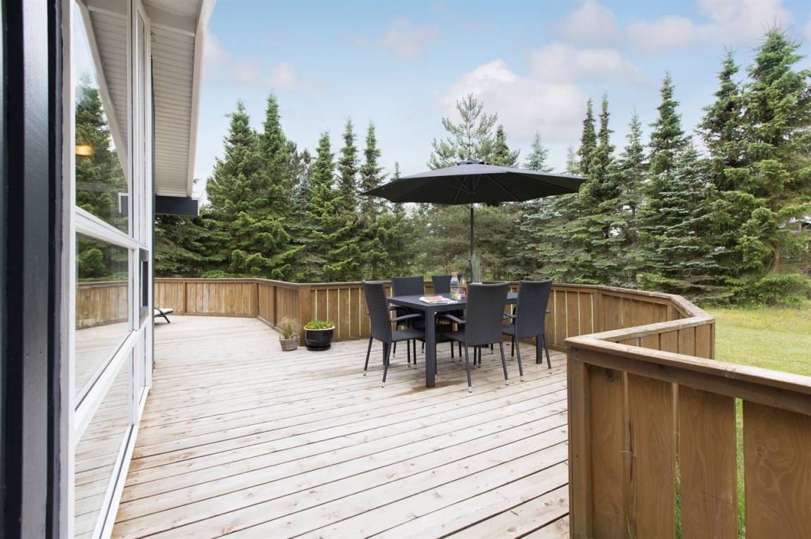 DraußenDie Ferienunterkunft liegt auf einem 1057 m² großen Gartengrundstück. Die Entfernung zum Meer beträgt 350 m. Die Entfernung zum Fjord beträgt 1500 m. Die nächste Einkaufsmöglichkeit liegt 1850 m entfernt. In einem Abstand von 890 m gibt es einen Golfplatz. Es steht ein offenes Terrassenareal zur Verfügung. Es steht ein Grill zur Verfügung. Parkplatz auf dem Grundstück.