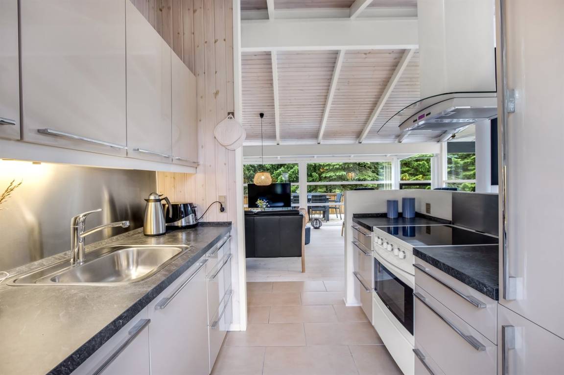 KücheDie Küche ist mit Kühlschrank ausgestattet. Außerdem gibt es 4 Keramik-Kochfelder, Umluftofen, Mikrowelle sowie Geschirrspüler. Fußbodenheizung in der Küche.