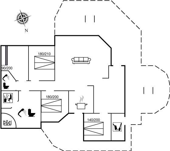 SchlafverhältnisseDie Schlafplätze verteilen sich auf 4 Schlafräume. 6 Schlafplätze in Doppelbetten. 2 Schlafplätze in einem Etagenbett. Außerdem gibt es ein großes offenes Obergeschoss. Ferner steht ein Kinderbett zur Verfügung.