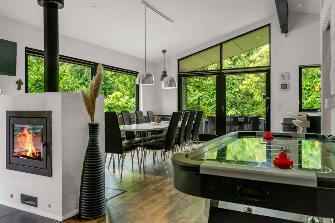 Im Haus erwartet euch ein gemütlicher Raum mit einem schönen Kaminofen, einem 75-Zoll-Qualitäts-TV mit soundbar und subwoofer sowie verschiedene Aktivitäten wie Airhockey, Tischfußball, Eishockeyspiel und verschiedene Brettspielen. Hier wird gelacht, gespielt und gemeinsam Zeit verbracht – ideale Bedingungen für unvergessliche Erinnerungen, ganz egal, ob draußen die Sonne scheint oder der Regen gegen die Scheiben prasselt.